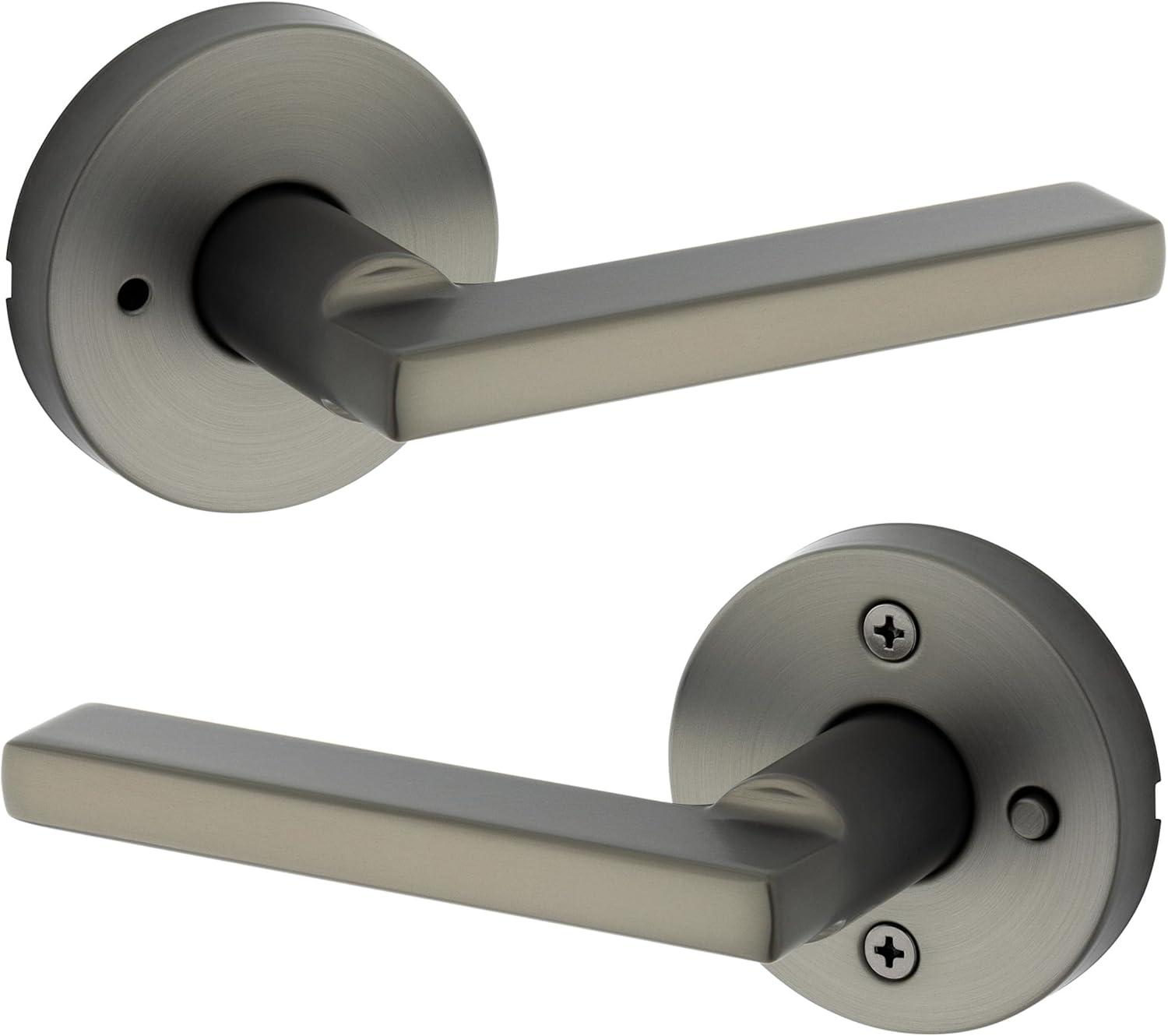 Kwikset 730HFLRDT-15 Halifax Lever with Round Rose Privacy Door Lock with 6AL Latch and RCS Strike Satin Nickel Finish