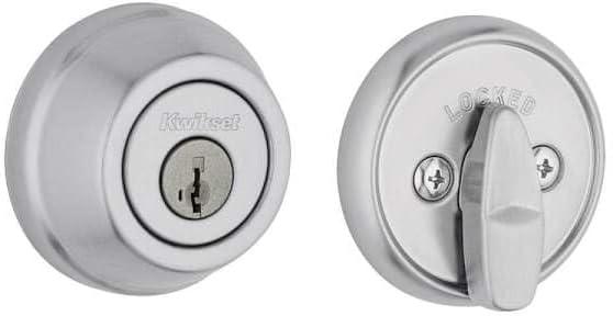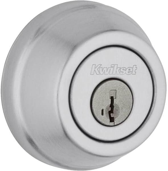 imageKwikset 780 Deadbolt Lock Polished Brass Round Exterior Keyed Front Entry Door Pick Resistant SmartKey Rekey Security Single Cylinder Dead Bolt with Microban ProtectionSatin Chrome