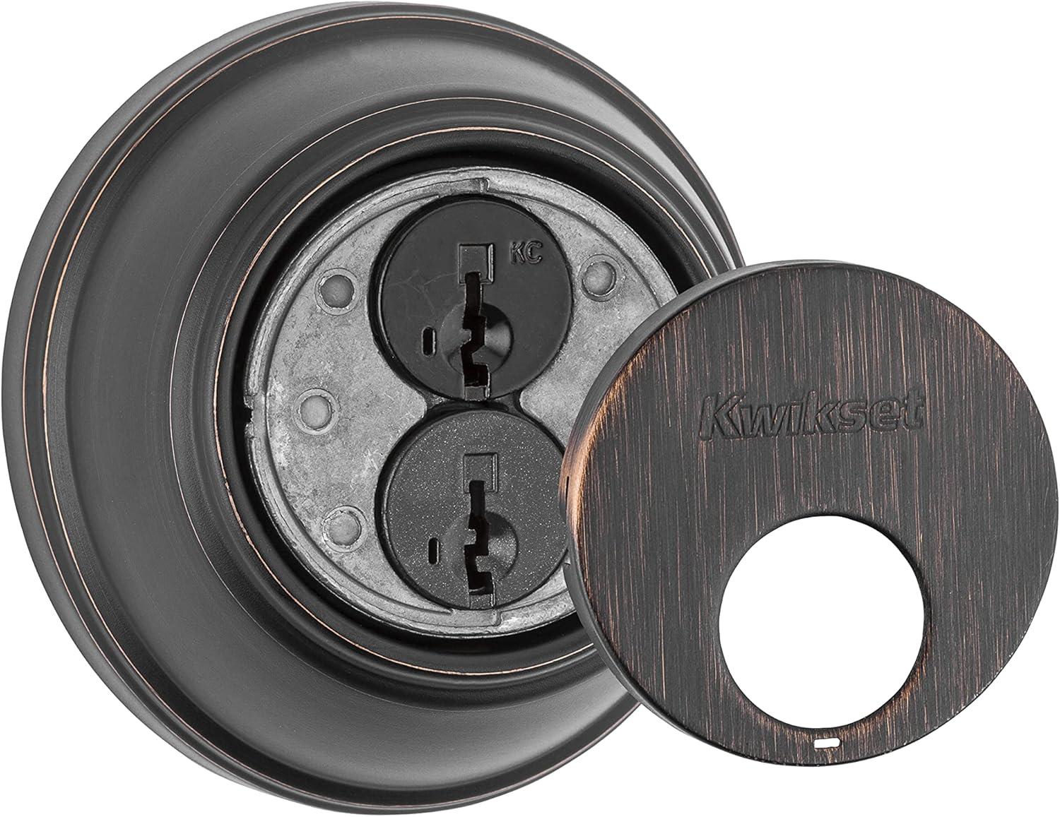 Kwikset 817 Deadbolt Deadbolt Lock, Venetian Bronze Round Exterior Keyed Front Entry Door, Pick Resistant SmartKey Rekey Security, Single Cylinder Dead Bolt(Venetian Bronze)