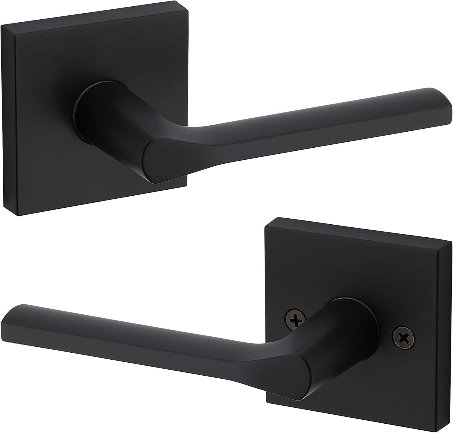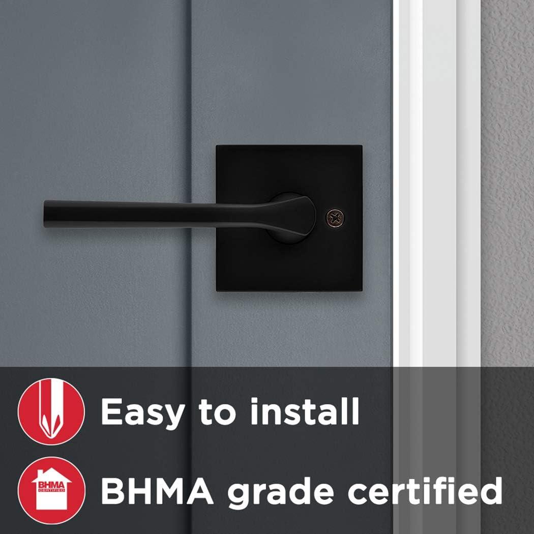 Step up to designer styles and superior security with Kwikset Signature Series products. Lisbon is the quintessential example of contemporary design. The unique thumb rest is precision-crafted for ergonomic comfort and the sleek, tapered contour of the lever brings simple sophistication to any contemporary setting. This passage knob/lever is best used on interior hall and closet applications where no locking is required, so the knob/lever is always free to turn. The knob/lever is reversible and mounts on both left and right handed doors. The rich tones of Iron Black add the finishing touch to this product. The Iron Black finish provides a rich and warm complement to the product's style. Kwikset door handles, door levers, door knobs, deadbolts, and door handlesets are made for the world you live in. These interior door handles match your home whether your decor is modern or traditional. For your next home improvement project choose from satin nickel, polished chrome, polished brass, venetian bronze, or iron black finishes to coordinate with your home furniture and decor. This is style made for the world you live in. Our hardware are designed so that you never have to sacrifice your security for style. Our door hardware is designed to welcome friends and family in and set you apart. They are crafted beyond utility; they are built with style. Because at the end of the day, it's your world and we're here to protect it. Iron black Lisbon door lever can be used on interior doors requiring no locking functionality, such as hallway or closet door handles. Fully reversible contemporary lever, can be installed on both right handed and left handed doors. Modern door handle meets ADA/ANSI A117.1 requirements, ensuring accessibility to all disabled persons. Kwikset passage lever easily installs in minutes with just a screwdriver; this square lever is ANSI/BHMA grade 2 certified. Lifetime mechanical and finish warranty. Kwikset’s door hardware and door handles offer great style for every home. These modern door levers are offered in satin nickel, polished chrome, venetian bronze and iron black. Kwikset passage levers are perfect for hallway or closet doors. Modern door handles work on most standard prepped doors. These Kwikset levers can be installed quickly and installed on left handed and right handed doors. Includes a square passage door lever and installation hardware and instructions. Kwikset door knobs and modern door locks can be used on interior doors.