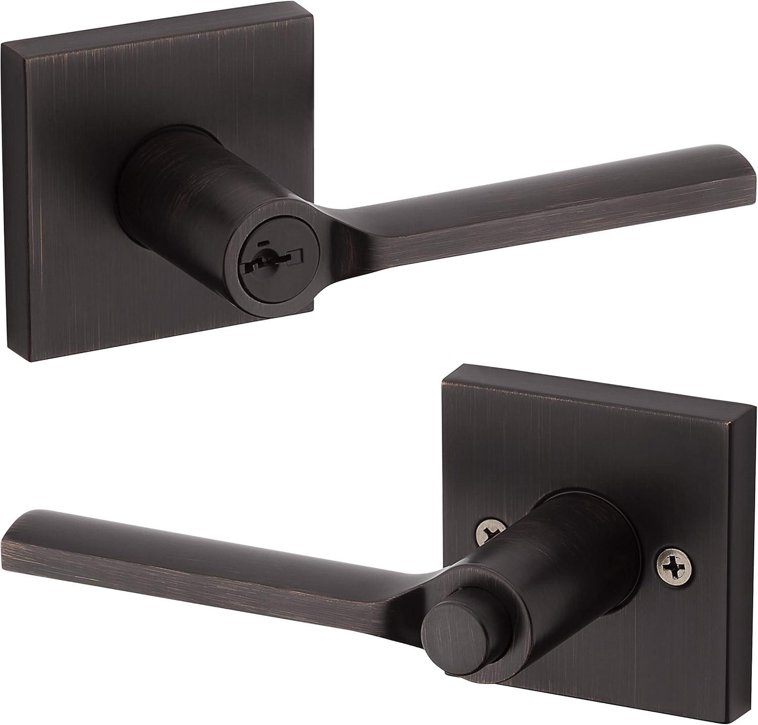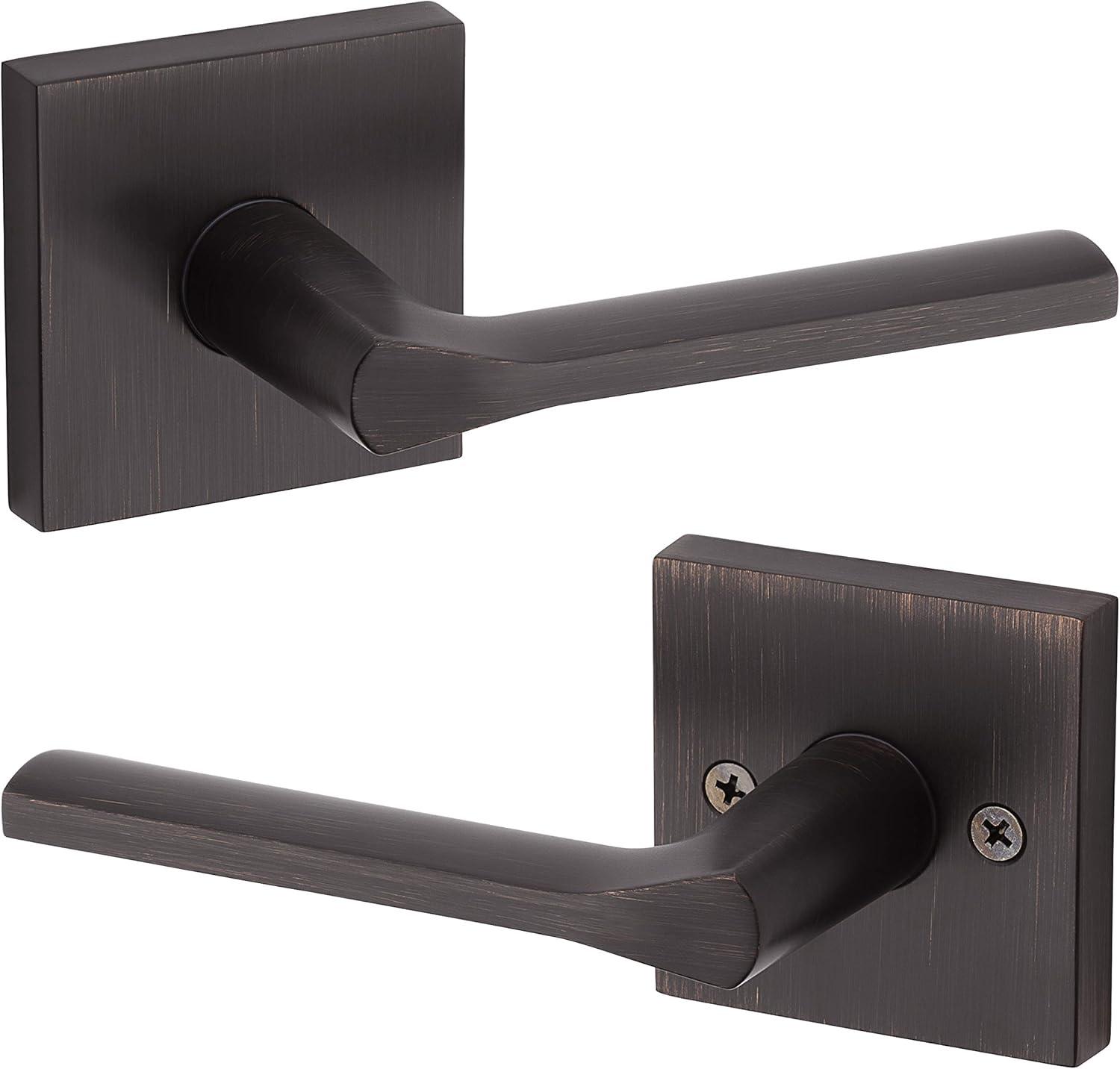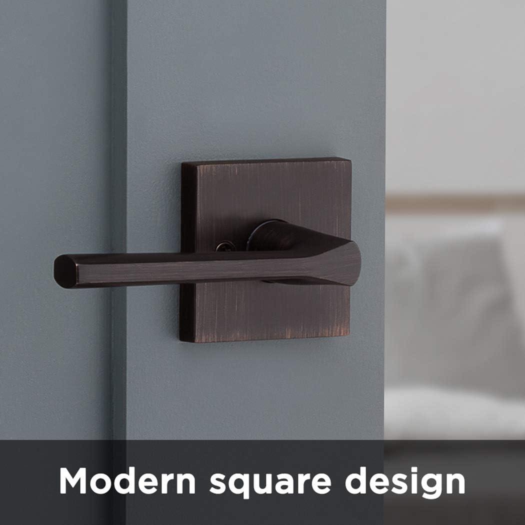 Kwikset 91540-034 Lisbon Door Handle Lever with Modern Contemporary Slim Square Design for Home Hallway or Closet Passage in Iron, Matte Black(Venetian Bronze)