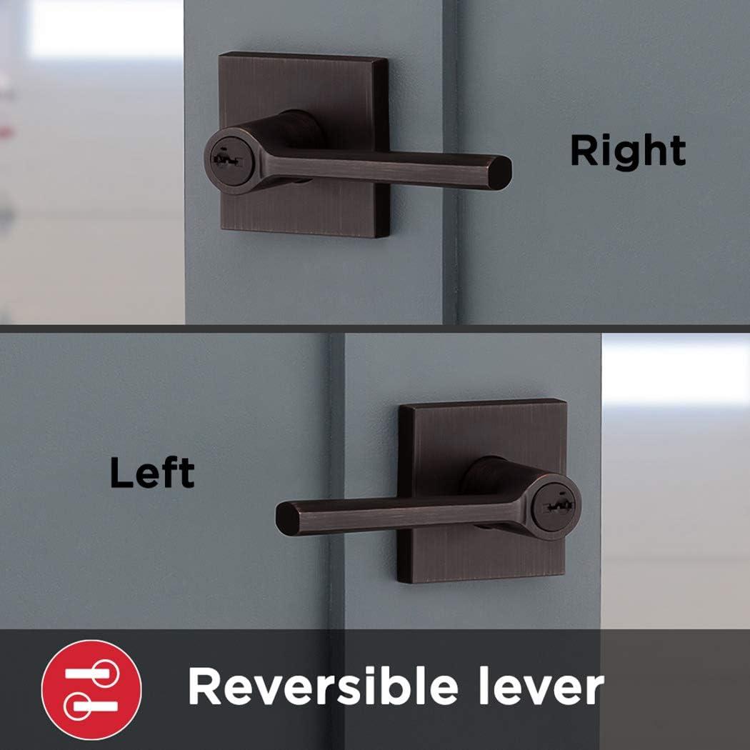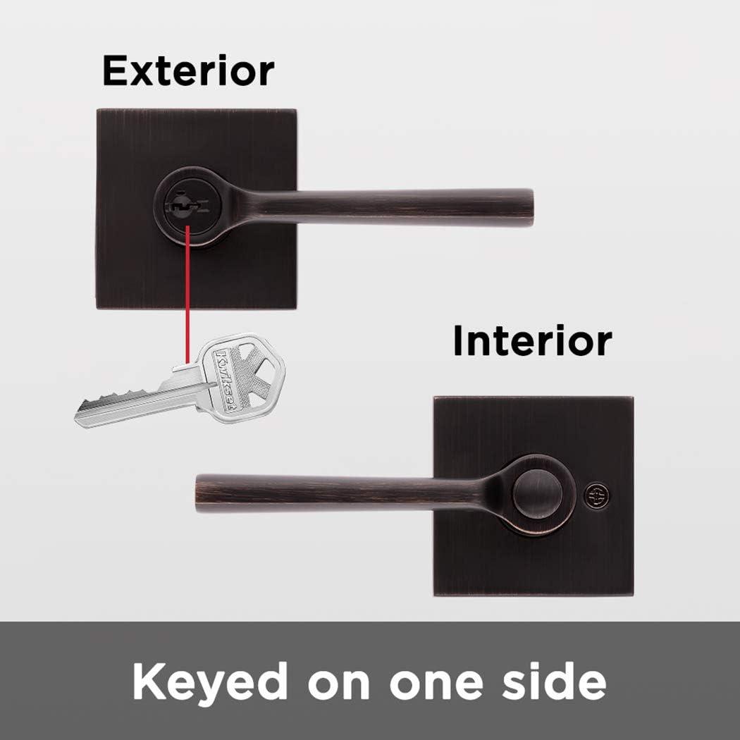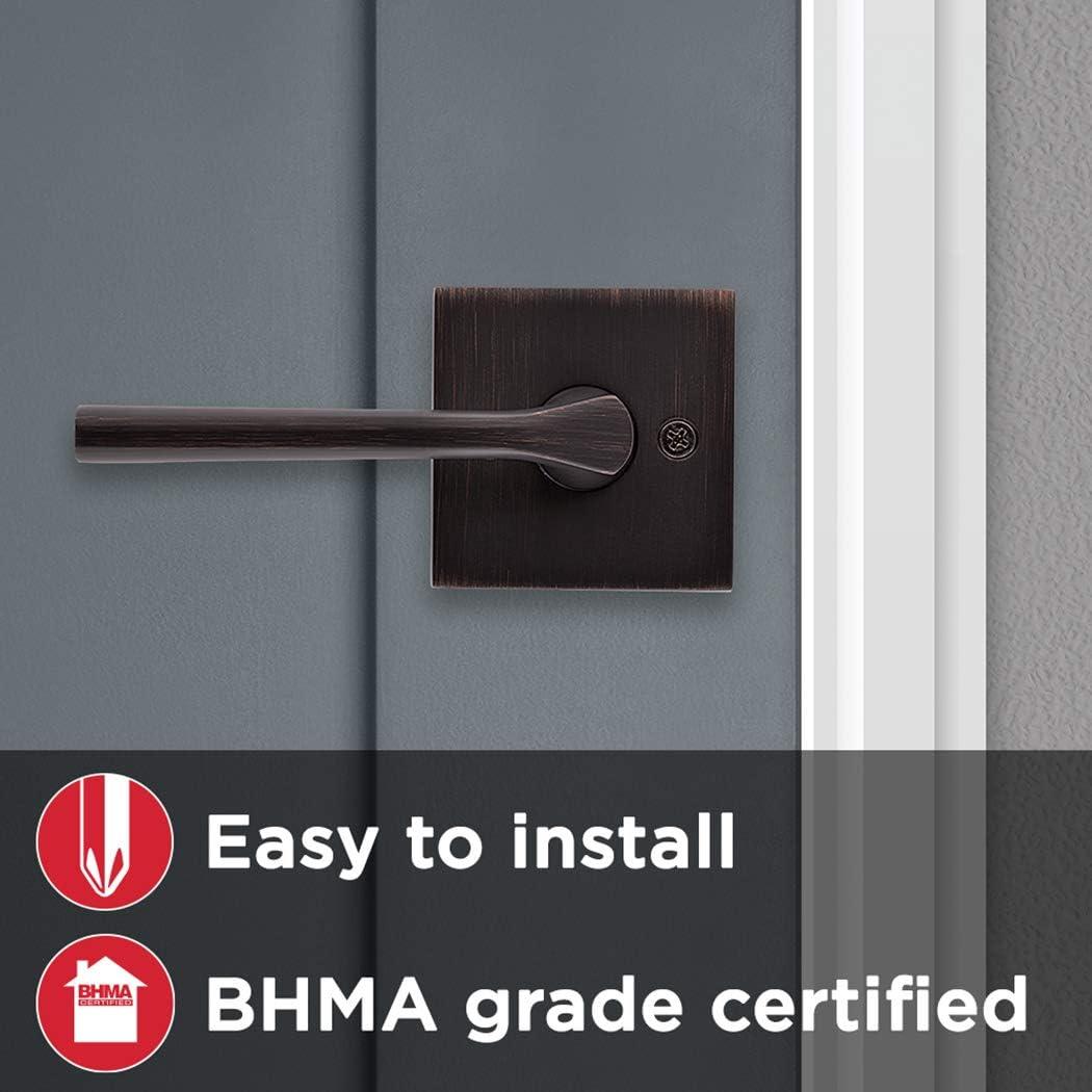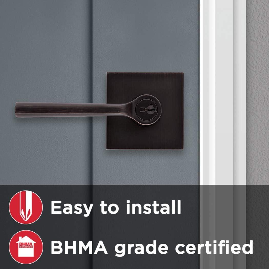 Kwikset 91540-034 Lisbon Door Handle Lever with Modern Contemporary Slim Square Design for Home Hallway or Closet Passage in Iron, Matte Black(Venetian Bronze)