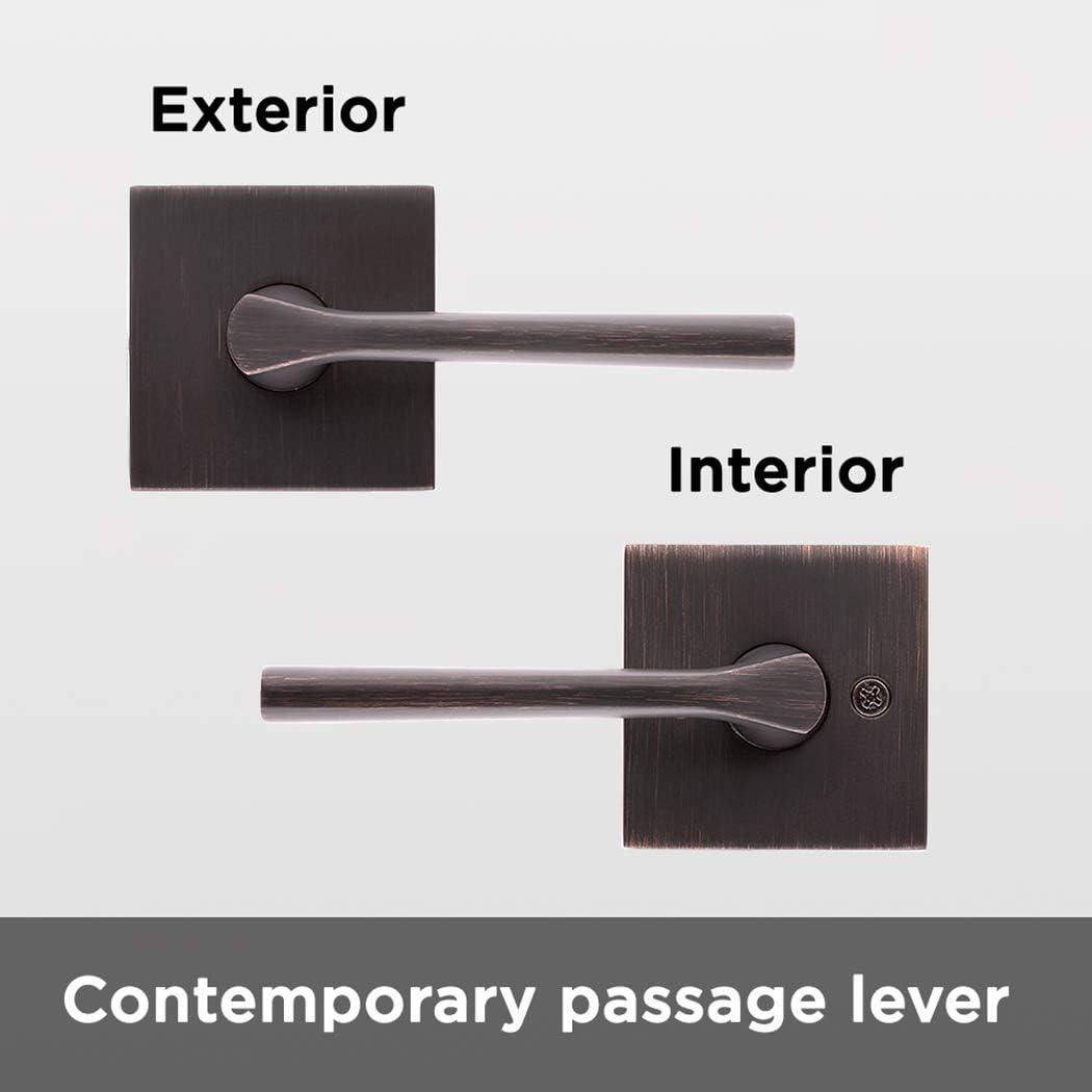 imageKwikset 91540034 Lisbon Door Handle Lever with Modern Contemporary Slim Square Design for Home Hallway or Closet Passage in Iron Matte BlackVenetian Bronze
