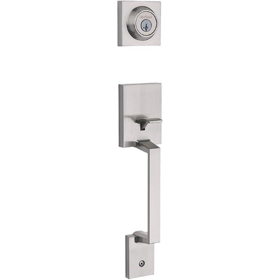 imageKwikset Amador Front Door Lock Handle and Deadbolt Set Entry Handleset Exterior Only Satin Nickel Pick Resistant SmartKey Rekey Deadbolt Security Interior Sold Separately with Microban Protection