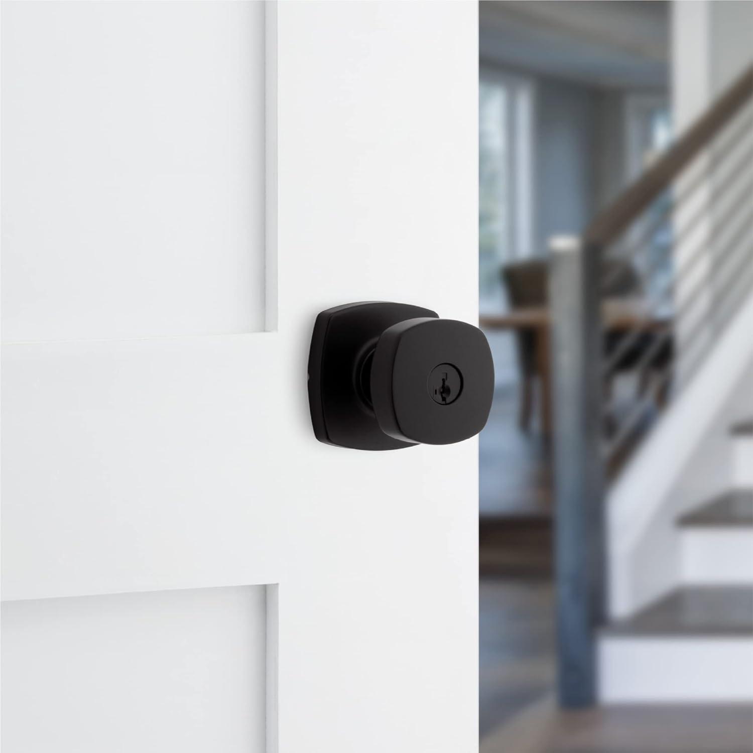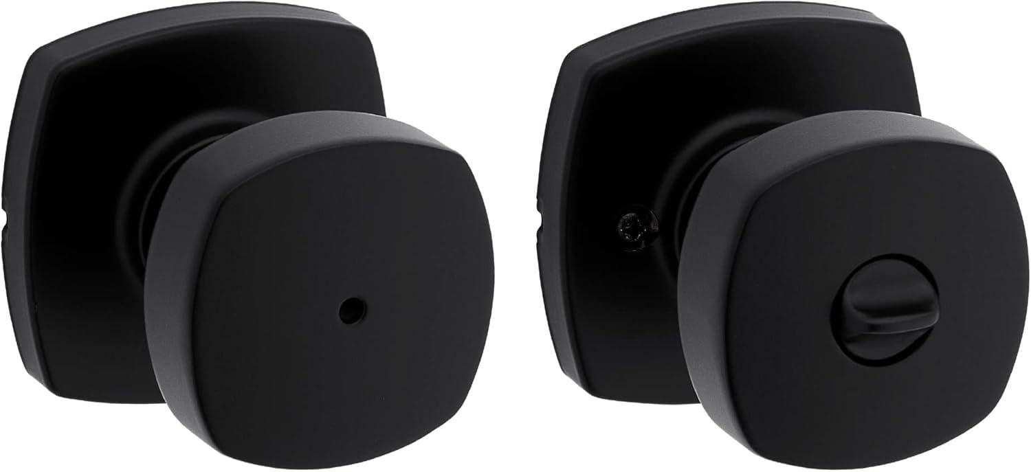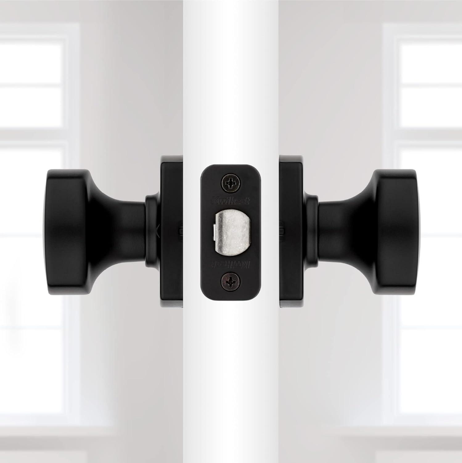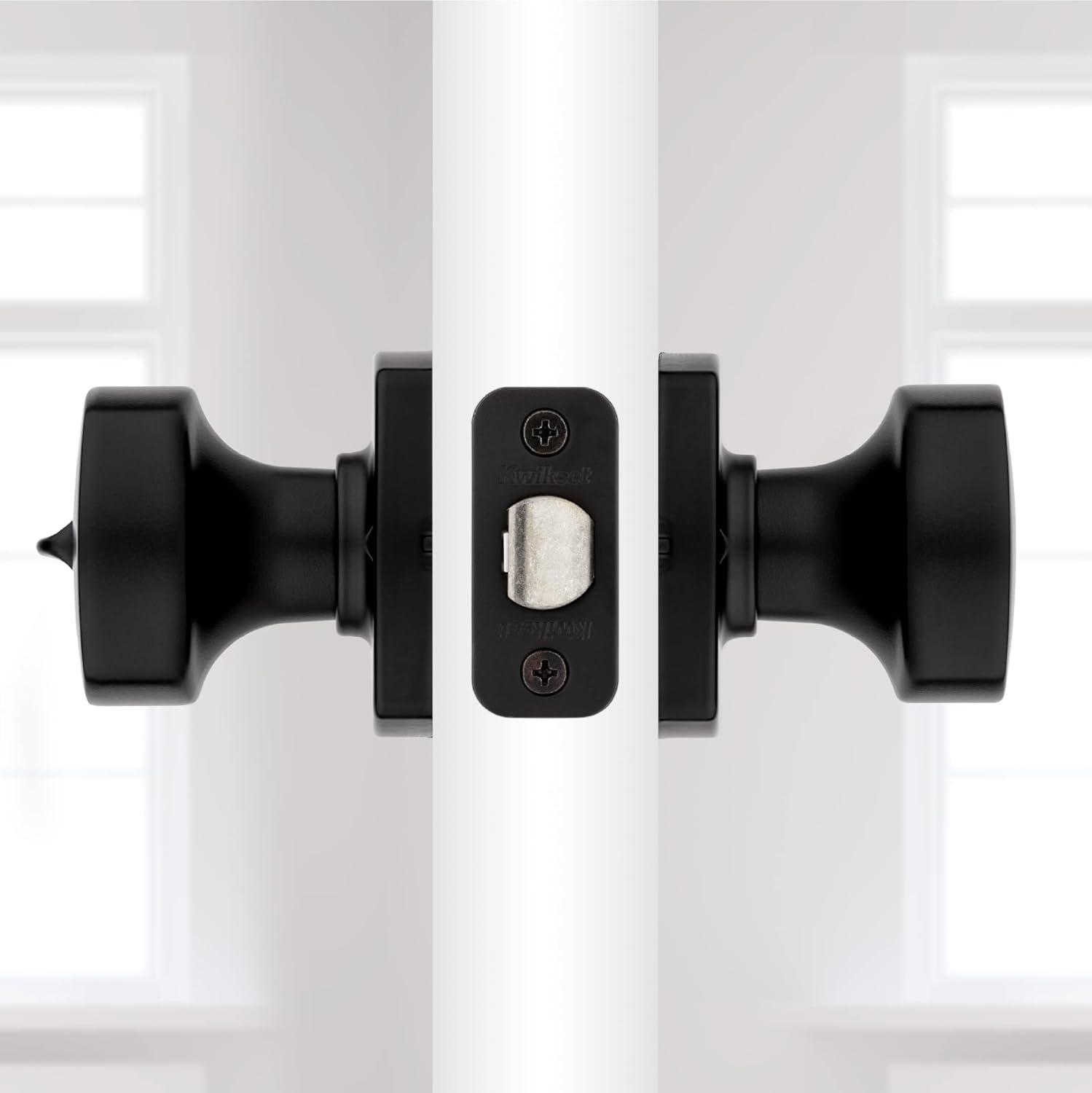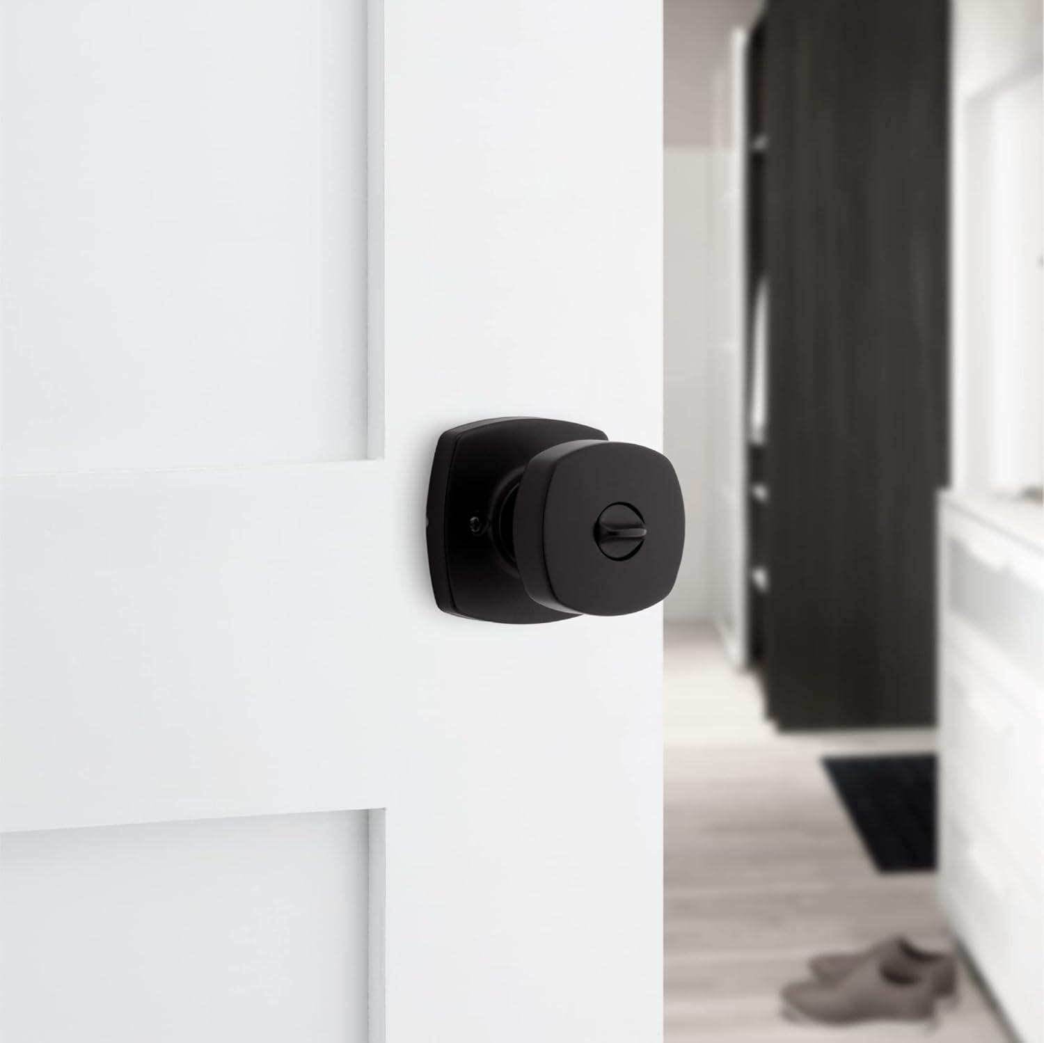 Kwikset Arroyo Knob Interior Privacy Door Knob with Lock, Door Handle For Bathroom and Bedroom, Matte Black Keyless Turn Lock Doorknob, with Microban Protection(Matte Black)