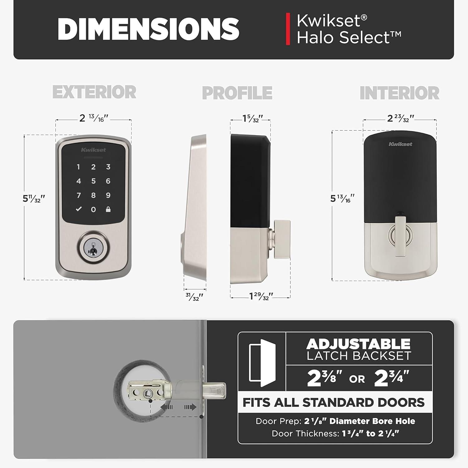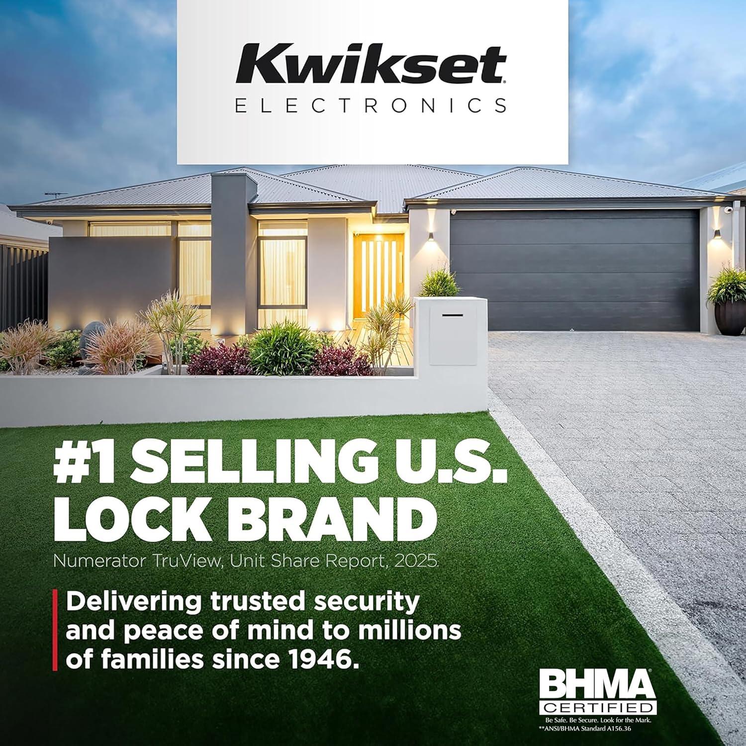 Bluetooth Connectivity to directly manage access codes, adjust lock settings, and share access with guests using the Kwikset app.