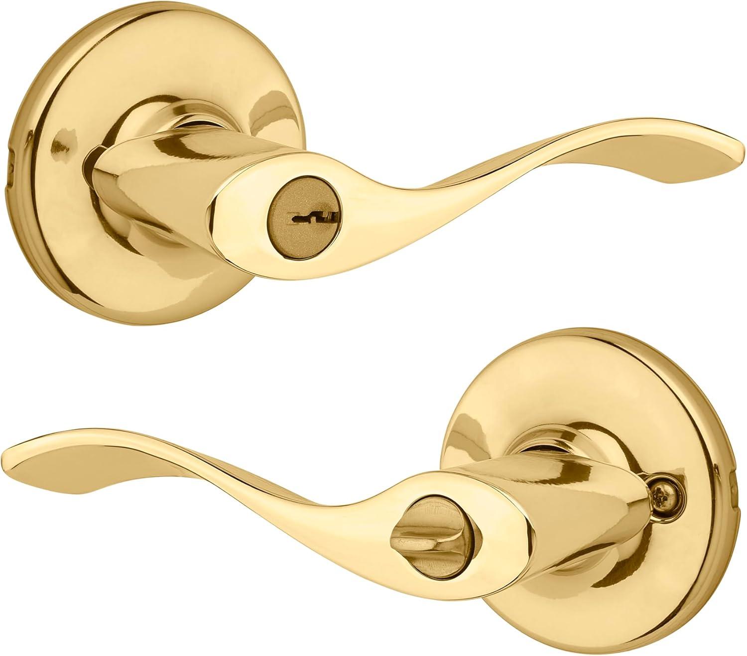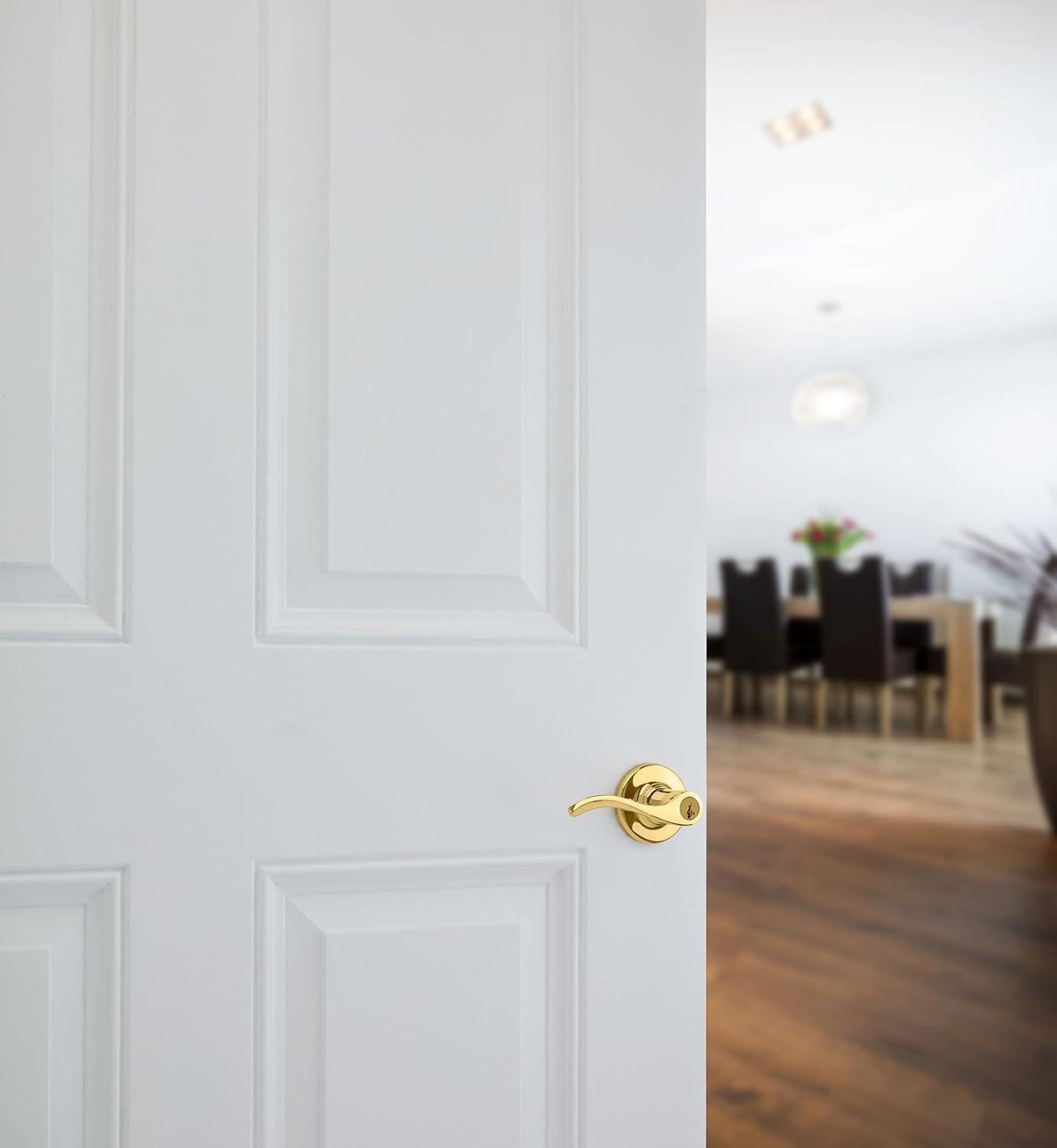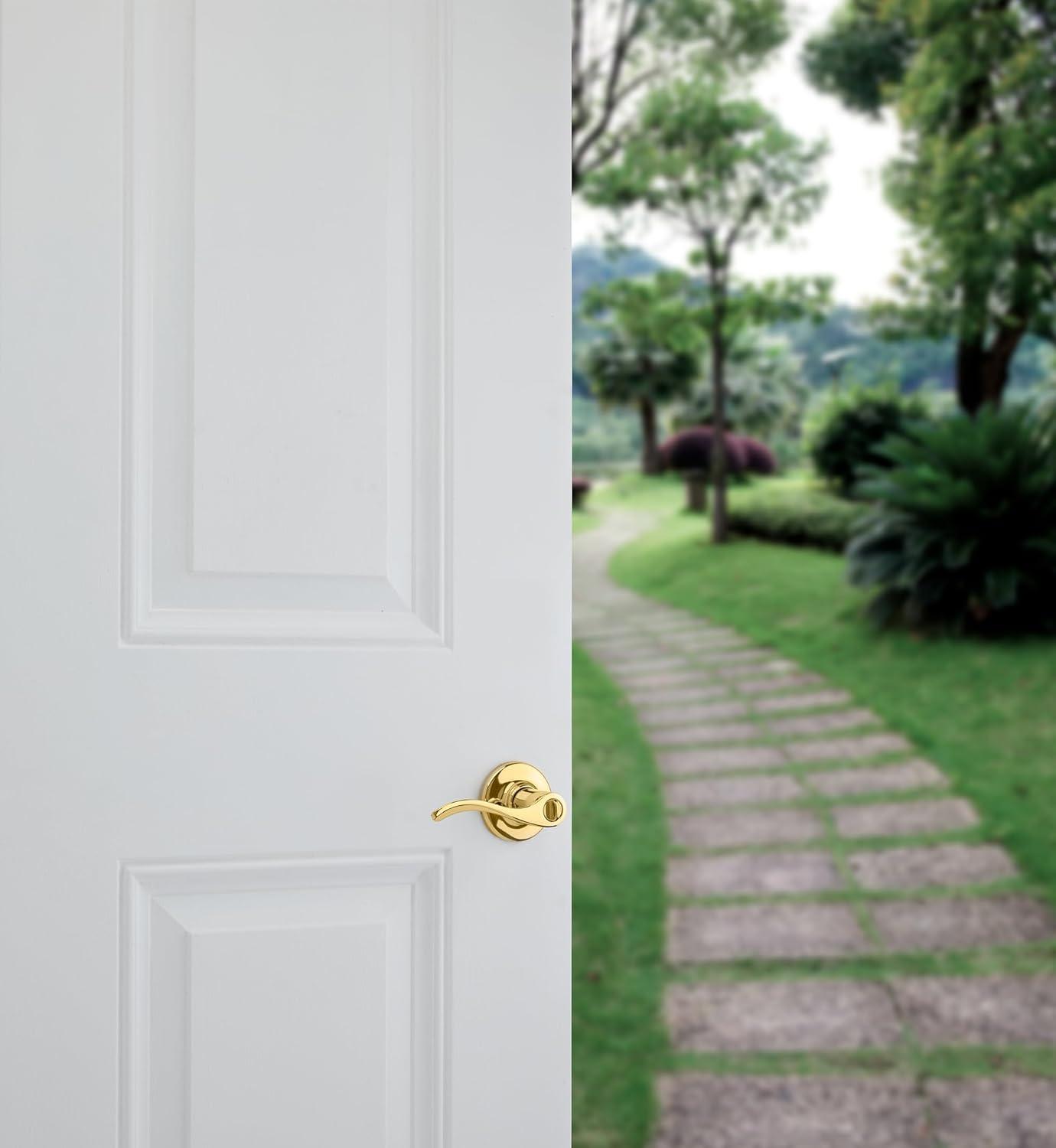 Kwikset Balboa Dummy Door Handle, Single Sided Lever for Closets, French Double Doors, and Pantry, Venetian Bronze Non-Turning Left Handed Interior Push/Pull Lever, with Microban Protection(Polished Brass)