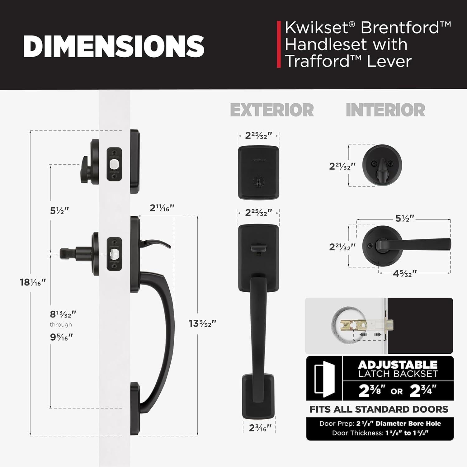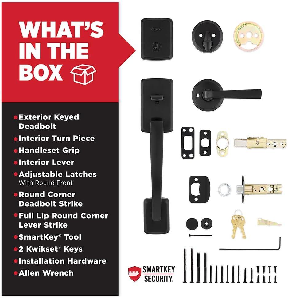 Kwikset Brentford Front Door Lock Handle and Deadbolt Set, Entry Handleset with Trafford Reversible Lever, Matte Black, Pick Resistant SmartKey Rekey Deadbolt Security, with Microban Protection(Matte Black)