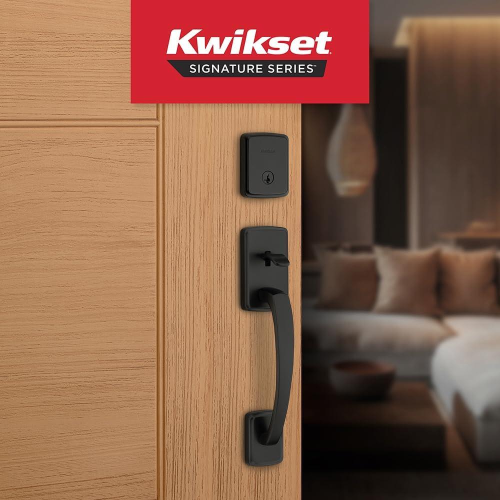 imageKwikset Brentford Front Door Lock Handle and Deadbolt Set Entry Handleset with Trafford Reversible Lever Matte Black Pick Resistant SmartKey Rekey Deadbolt Security with Microban ProtectionMatte Black