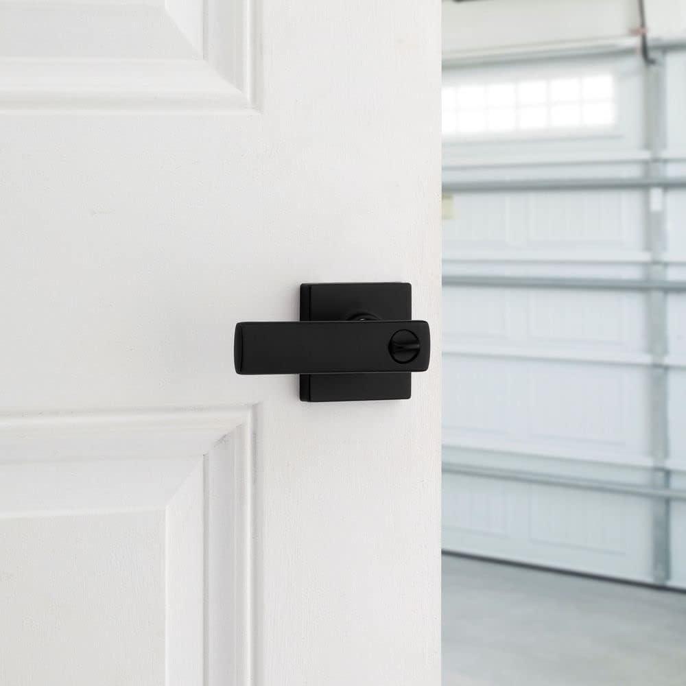 Kwikset Breton Interior Privacy Door Handle with Lock 4 Pack, Door Lever for Bathroom and Bedroom, Matte Black Reversible Keyless Turn Lock, with Microban Protection(Matte Black)