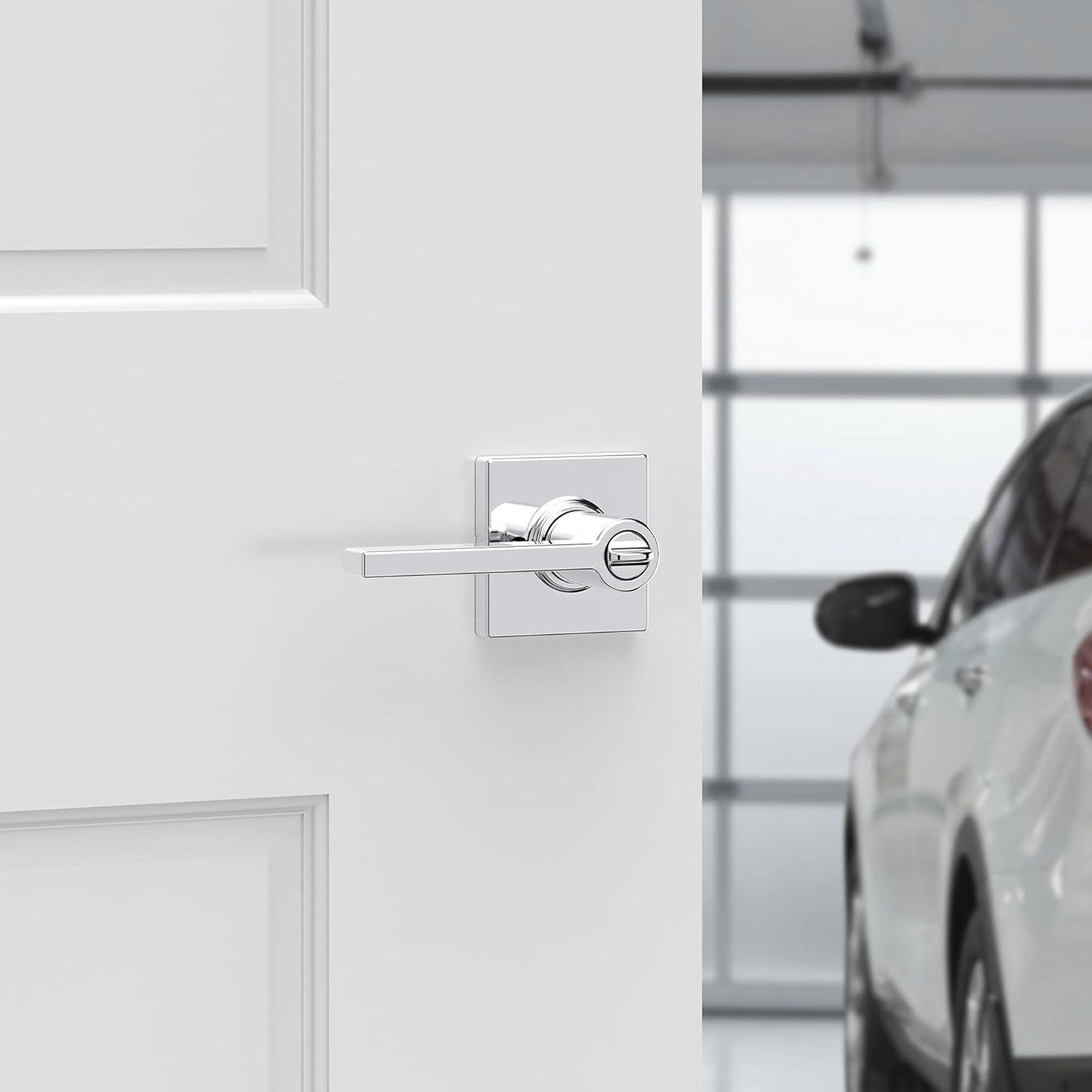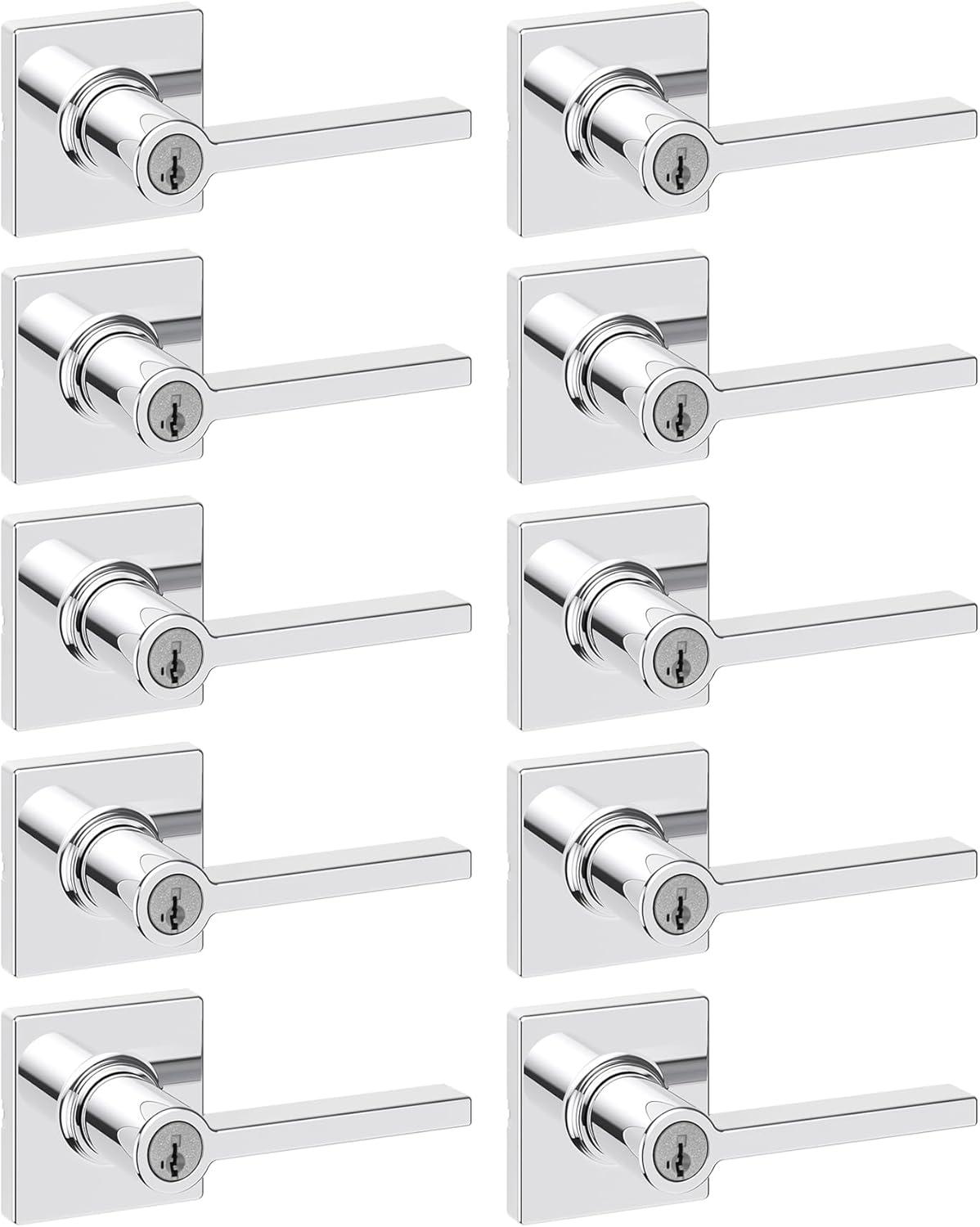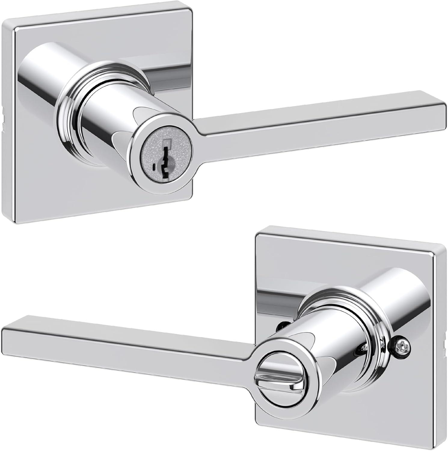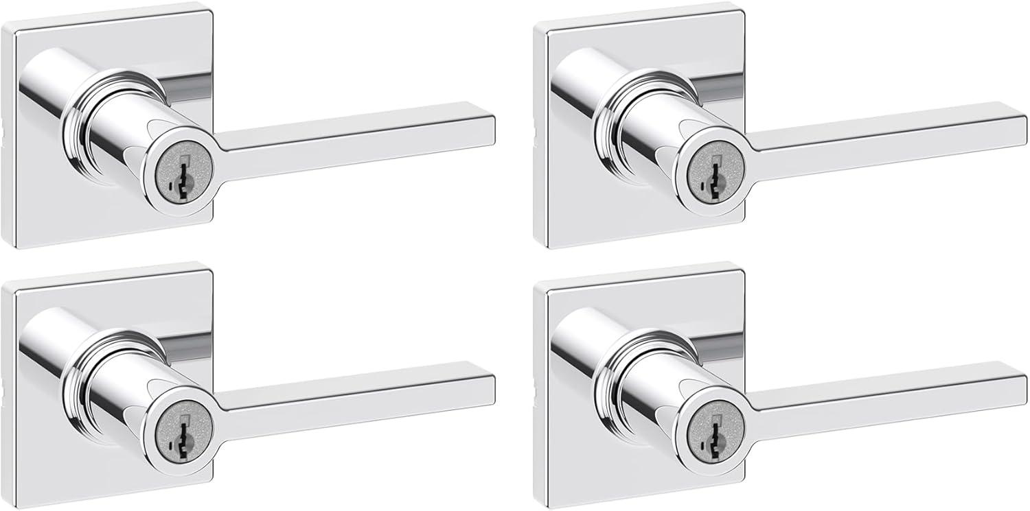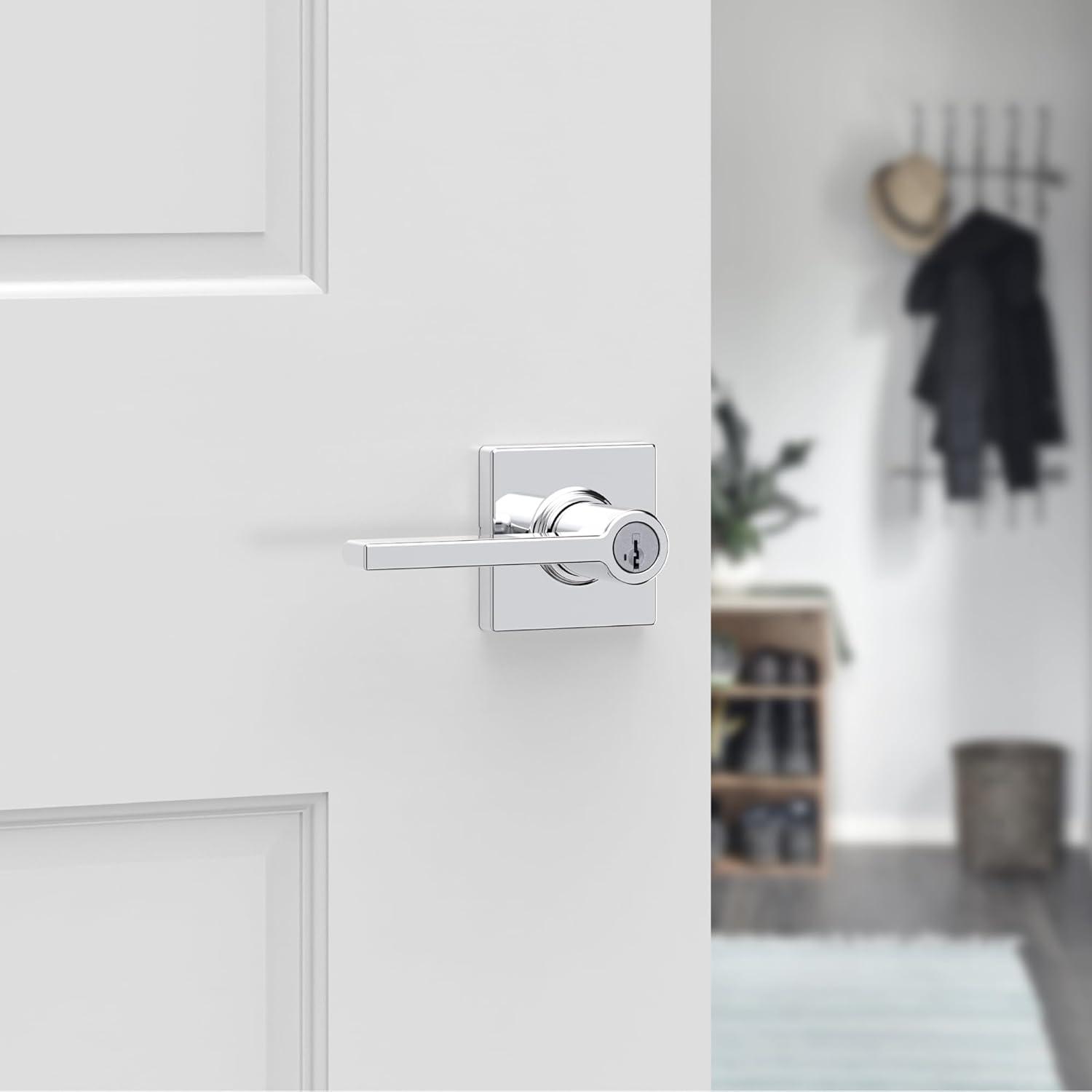 Kwikset Casey Entry Door Handle with Lock and Key, Secure Keyed Reversible Lever Exterior, For Front Entrance and Bedrooms, Satin Nickel , Pick Resistant Smartkey Rekey Security and Microban(Polished Chrome)