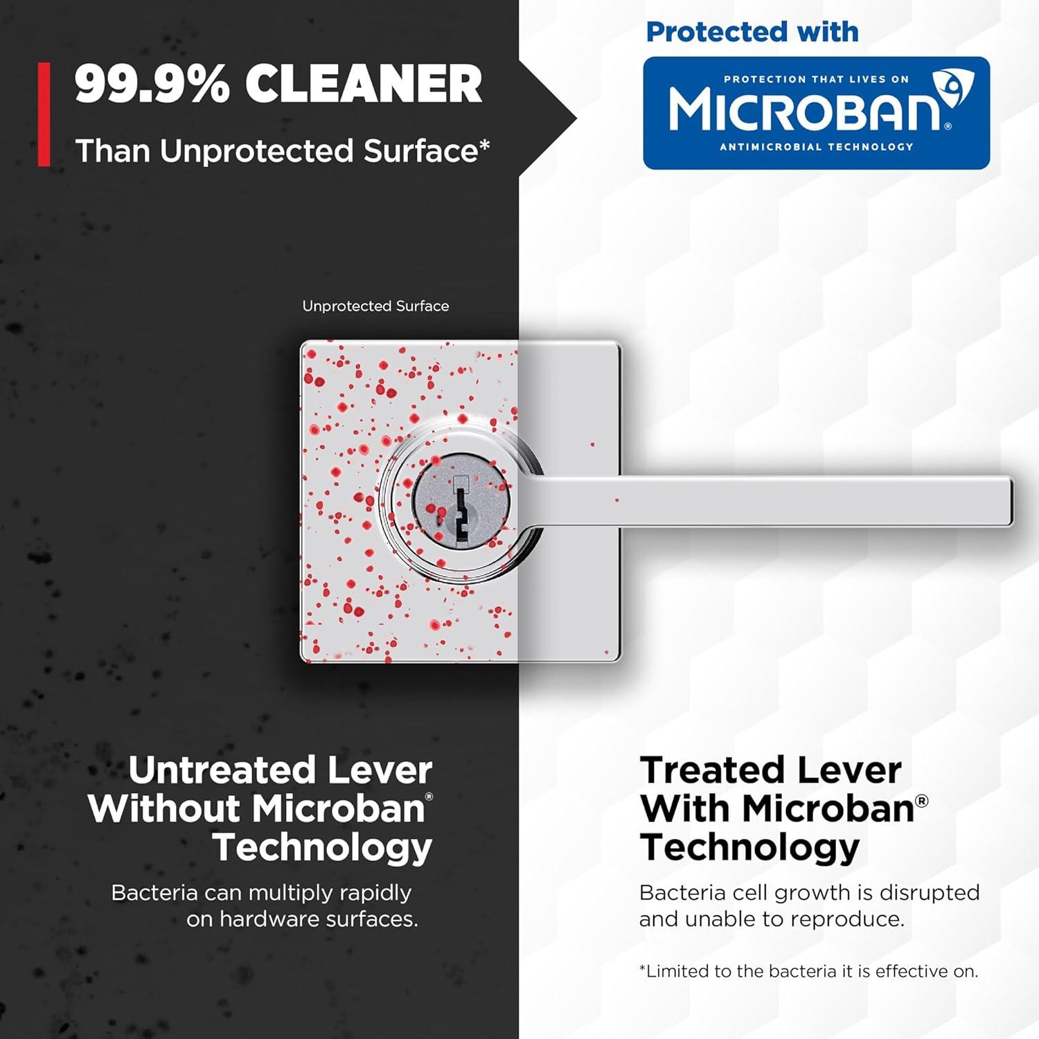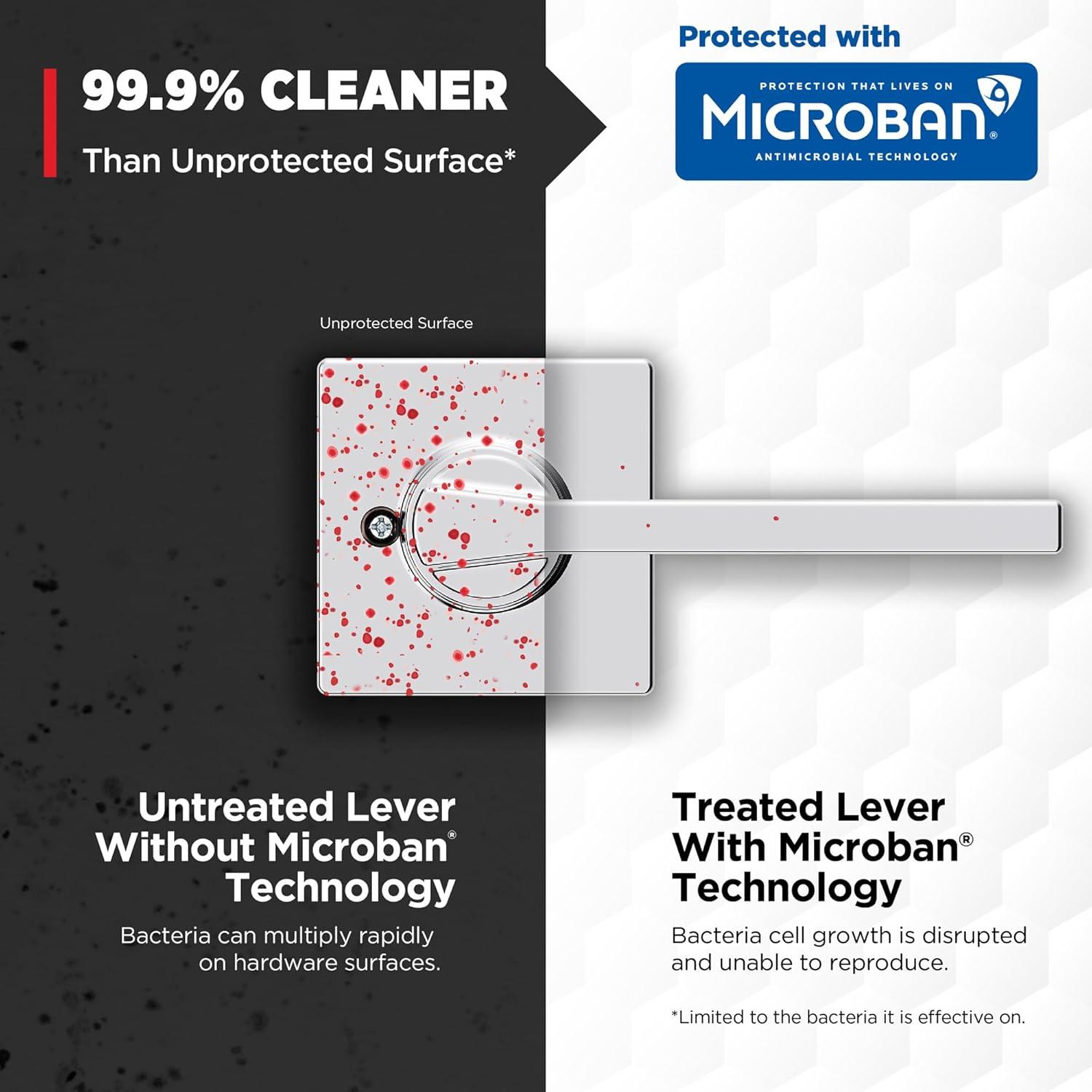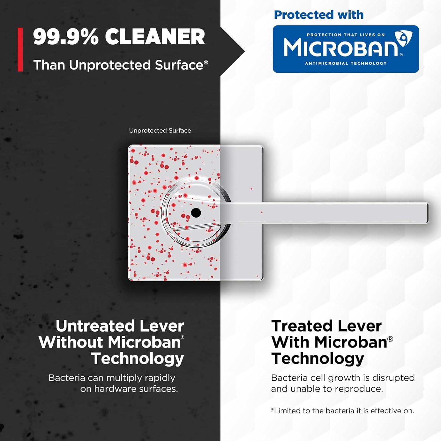MICROBAN PROTECTION: Kwikset’s door hardware is treated with Microban, this offers powerful product protection that is 99.9% cleaner than an unprotected surface