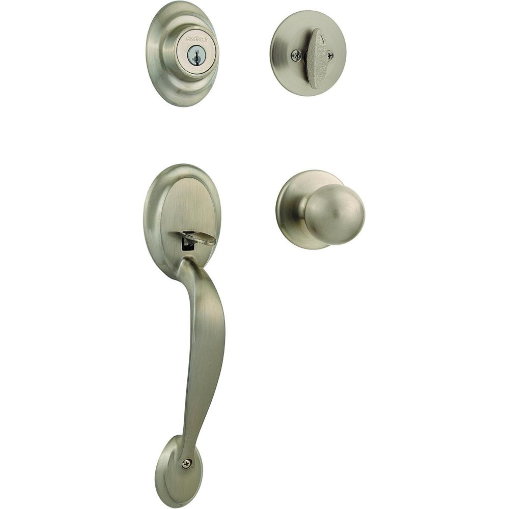 Kwikset Dakota Front Door Lock Handle and Deadbolt Set, Entry Handleset Exterior with Interior Door Knob, Satin Nickel, Pick Resistant SmartKey Rekey Deadbolt Security(Polished Brass)