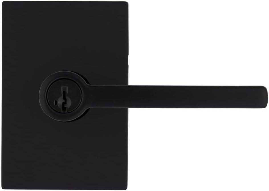 Kwikset 91540-034 Lisbon Door Handle Lever with Modern Contemporary Slim Square Design for Home Hallway or Closet Passage in Iron, Matte Black(Matte Black)