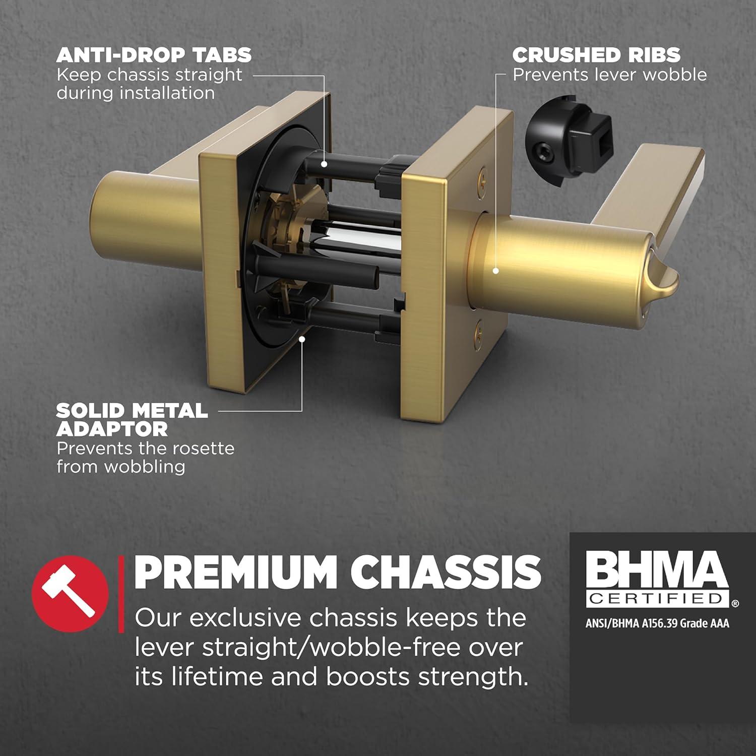 EASY INSTALL REVERSIBLE LEVER: Do it yourself, installs in minutes with just a screwdriver. Reversible handle for left- or right-handed doors, detailed directions provided
