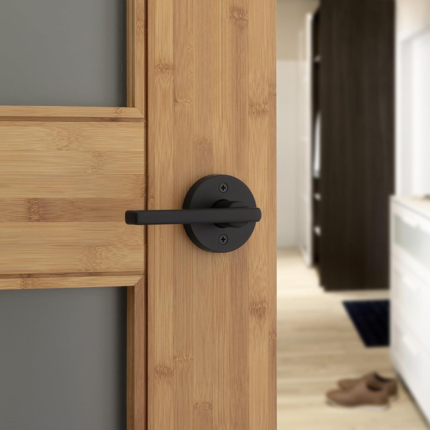imageKwikset Halifax Entry Door Handle with Lock and Key Secure Keyed Reversible Lever Exterior for Front Entrance and Bedrooms Satin Brass Pick Resistant Smartkey Rekey Security and MicrobanMatte Black