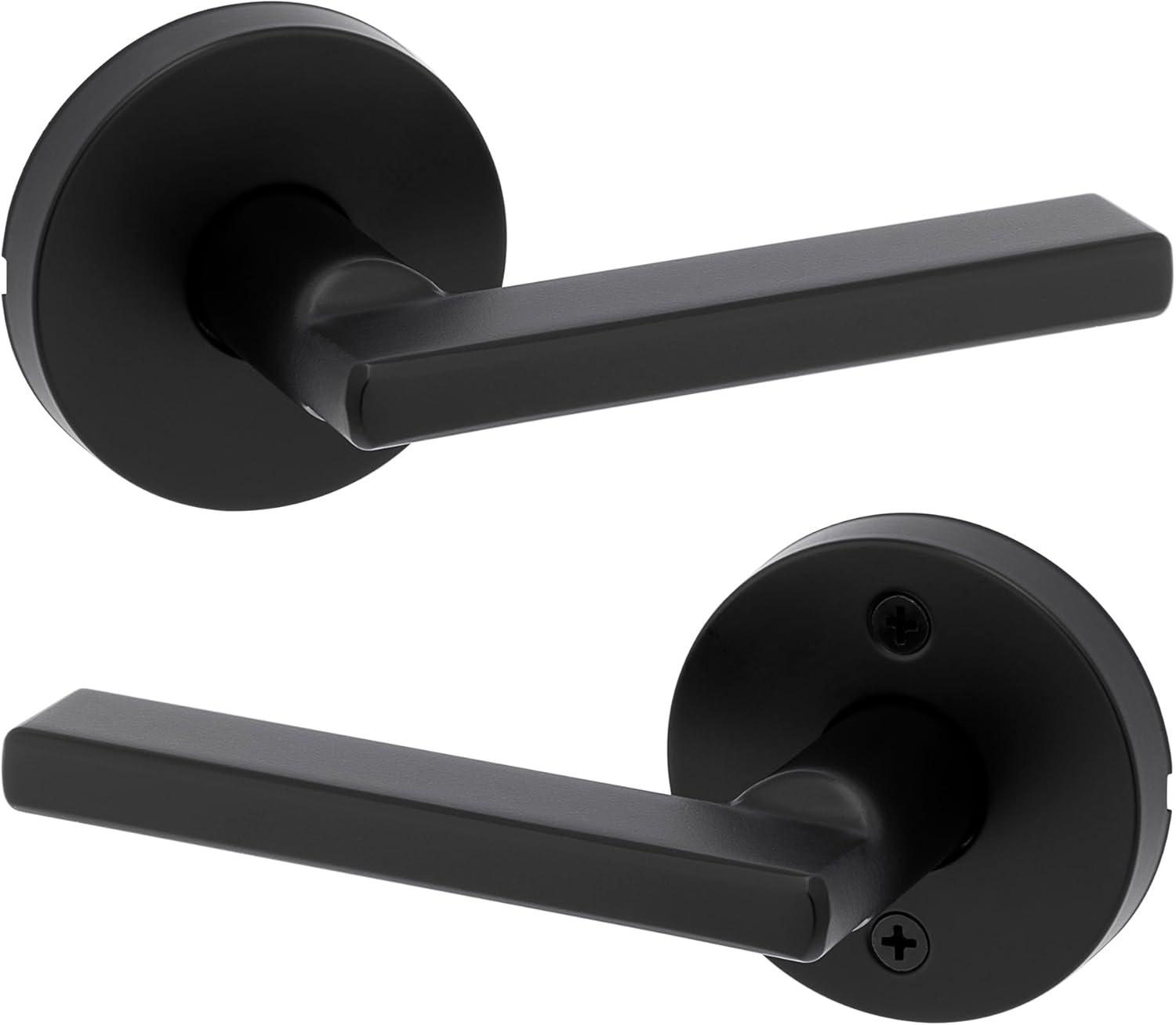 Kwikset Halifax Entry Door Handle with Lock and Key, Secure Keyed Reversible Lever Exterior, for Front Entrance and Bedrooms, Satin Brass, Pick Resistant Smartkey Rekey Security and Microban(Matte Black)