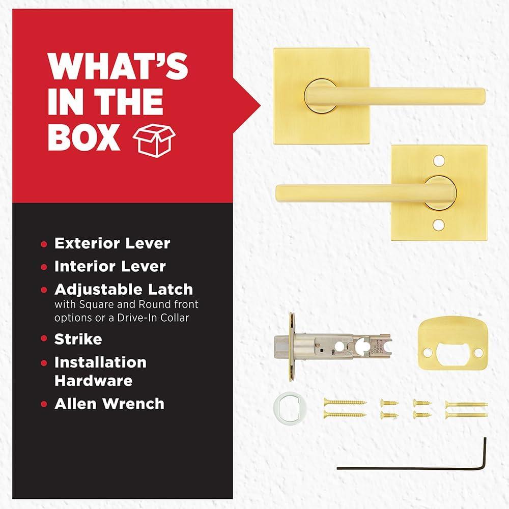 BOX INCLUDES: Interior and Exterior Passage Door Lever, Adjustable Latch, Installation Hardware, Install Guide
