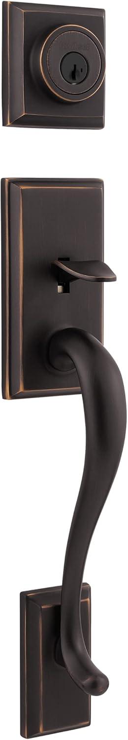 Kwikset Hawthorne Front Door Lock Handle and Deadbolt Set, Entry Handleset Exterior with Interior Door Knob, Venetian Bronze, Pick Resistant SmartKey Rekey Deadbolt Security, with Microban Protection(Venetian Bronze)