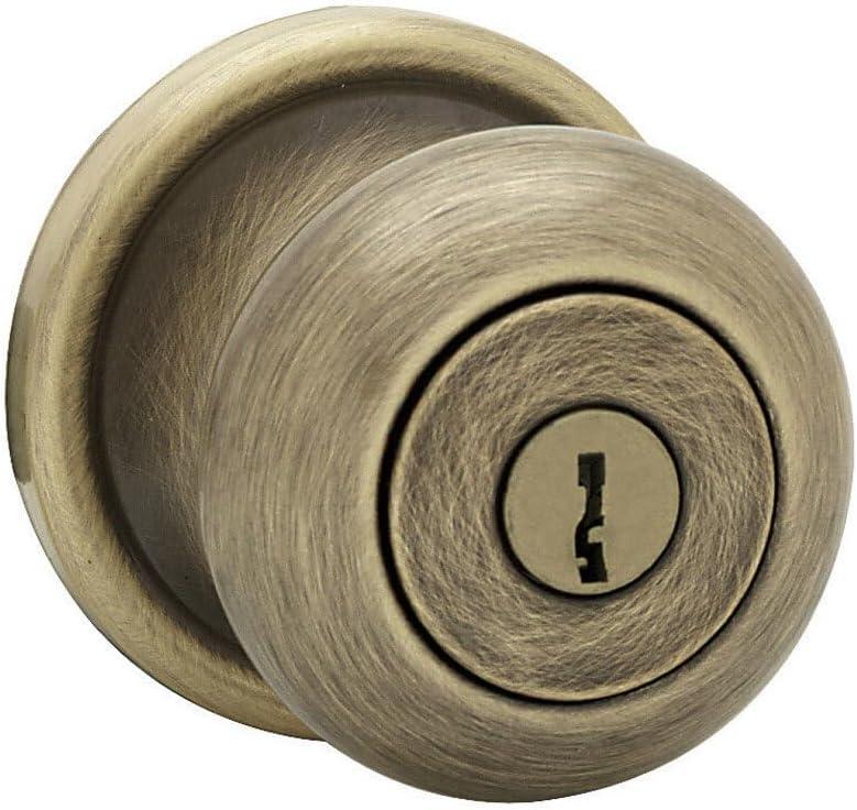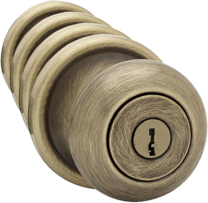 Kwikset Juno Entry Door Knob with Lock and Key, Secure Keyed Handle Exterior, Front Entrance and Bedroom, Polished Brass, Pick Resistant SmartKey Rekey Security(Antique Brass)