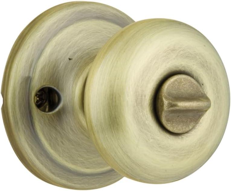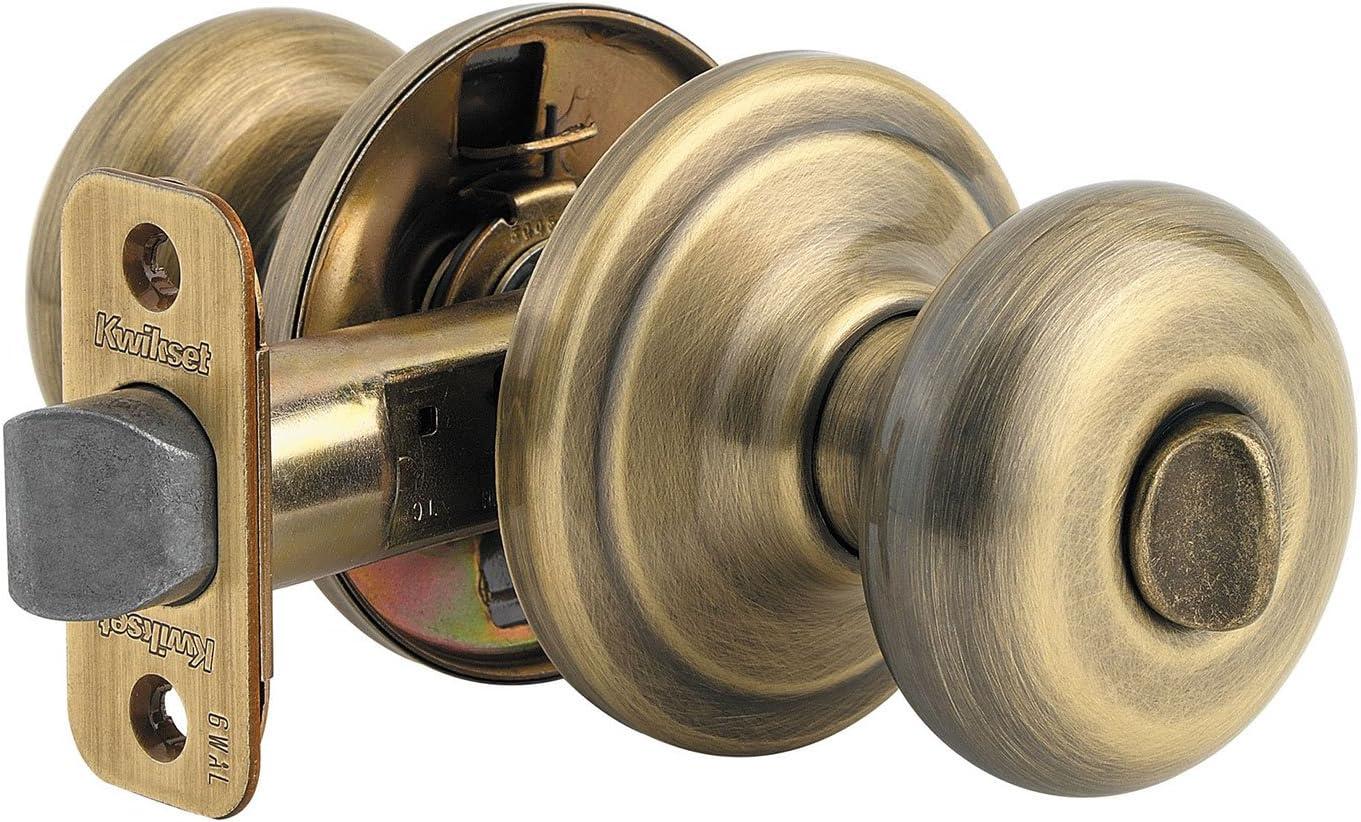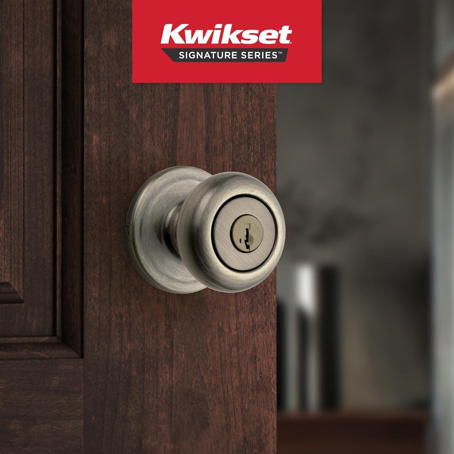 imageKwikset Juno Entry Door Knob with Lock and Key Secure Keyed Handle Exterior Front Entrance and Bedroom Polished Brass Pick Resistant SmartKey Rekey SecurityAntique Brass