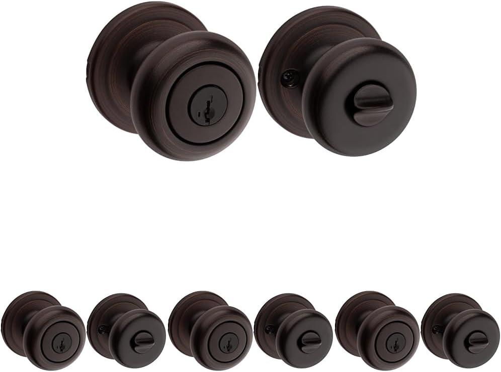 imageKwikset Juno Entry Door Knob with Lock and Key Secure Keyed Handle Exterior Front Entrance and Bedroom Polished Brass Pick Resistant SmartKey Rekey SecurityVenetian Bronze