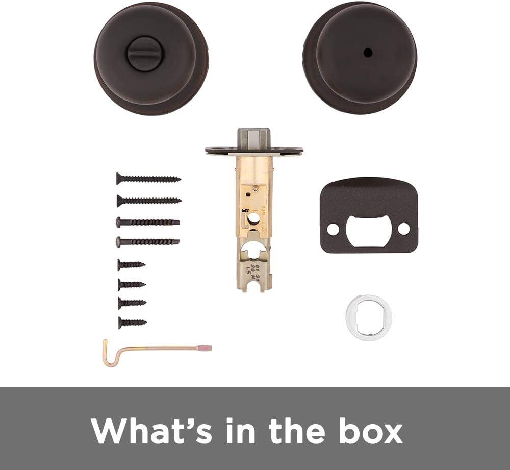BOX INCLUDES: Keyed Exterior Knob, Interior Knob, Screws, Adjustable Latch, 2 Keys, Strike Plate, SmartKey Tool, Installation Hardware, Install Guide