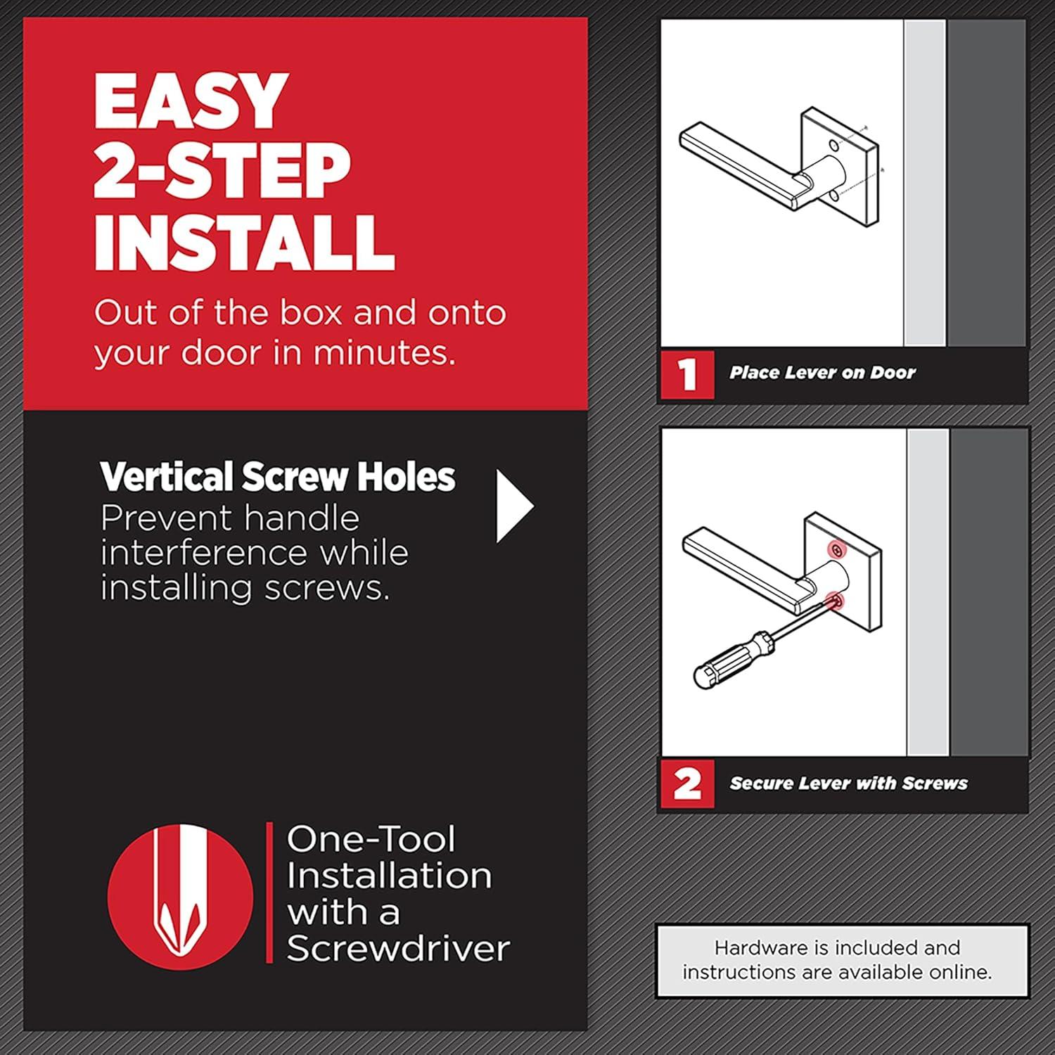 EASY INSTALL REVERSIBLE LEVER: Do it yourself, installs in minutes with just a screwdriver. Reversible handle for left- or right-handed doors, detailed directions provided