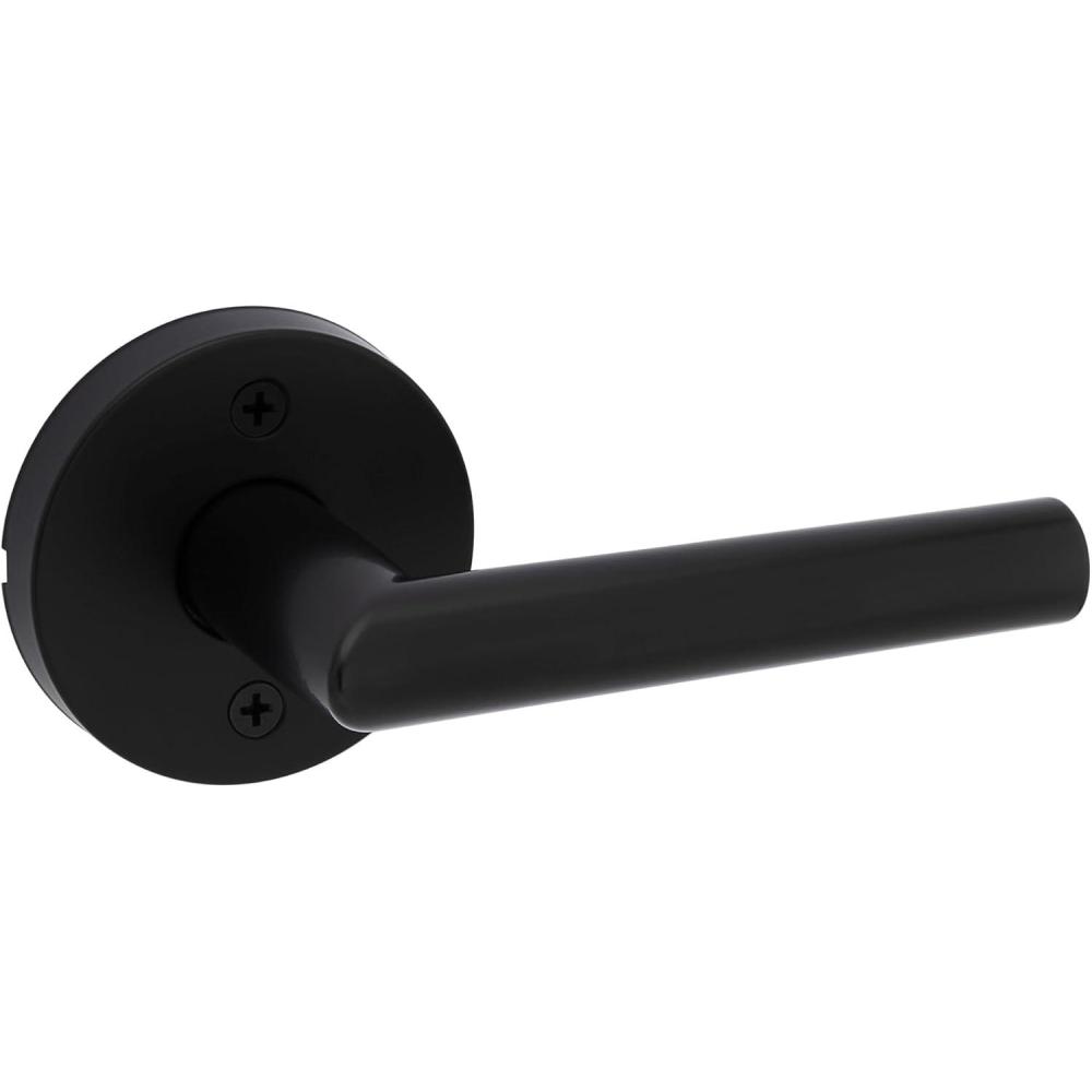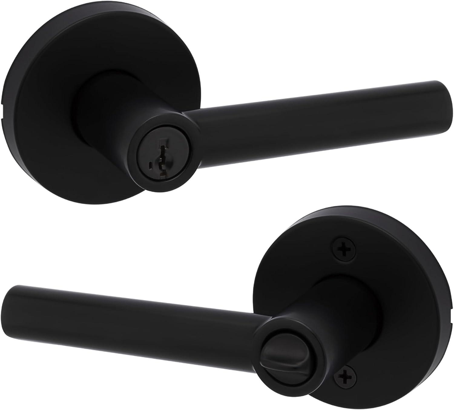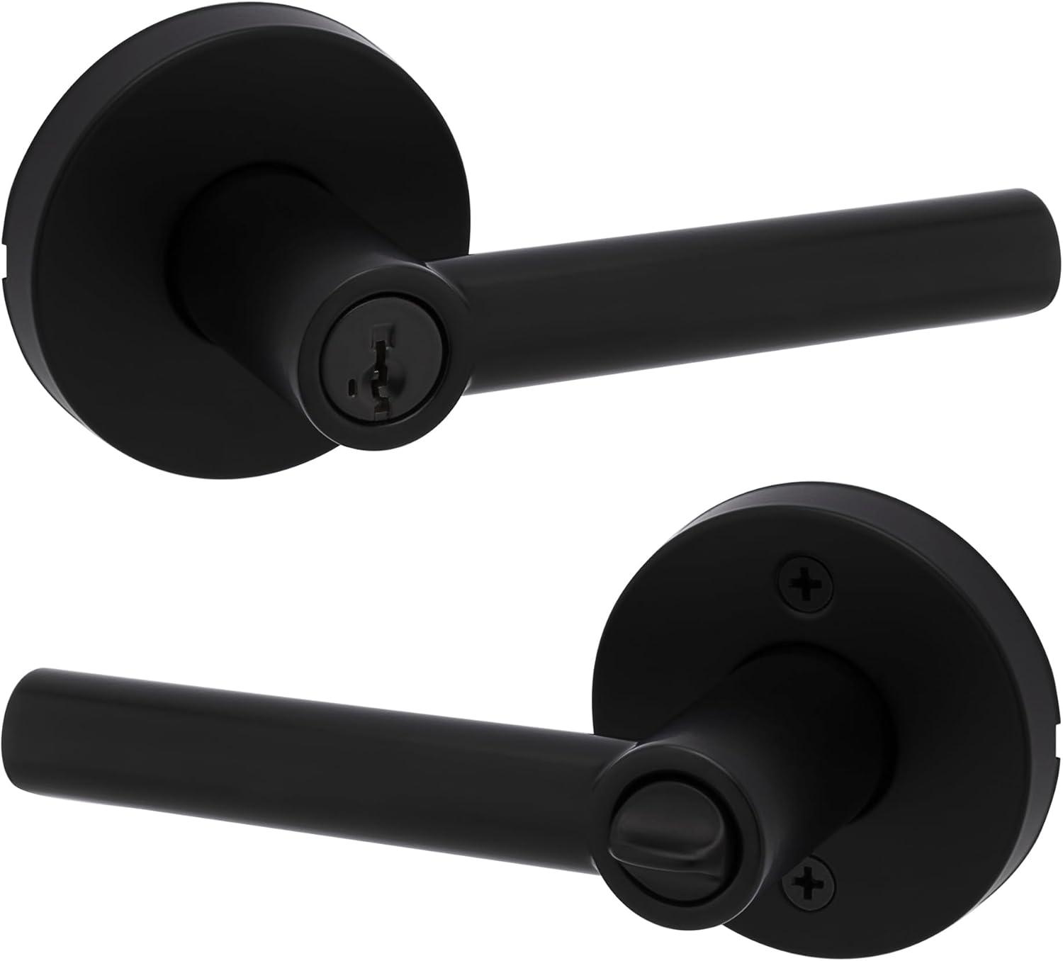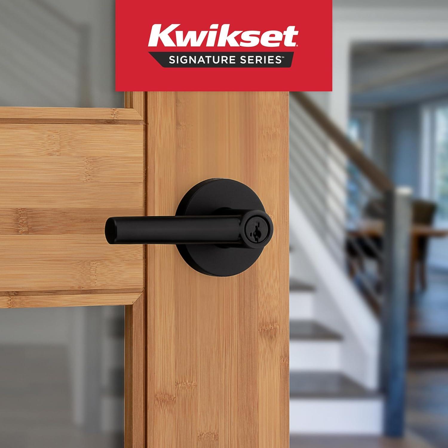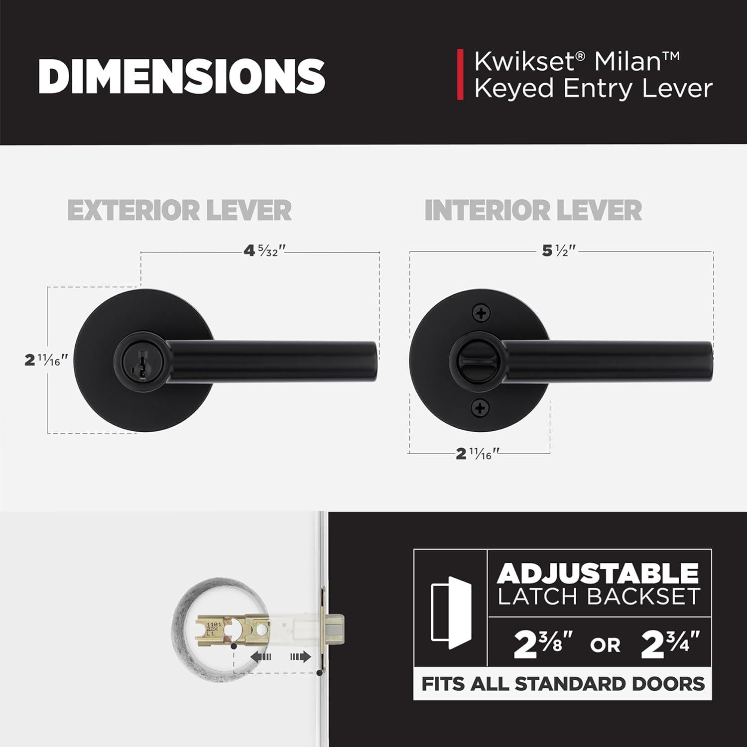 Kwikset Milan Entry Door Handle with Lock and Key, Secure Keyed Reversible Lever Exterior, Doorlock, For Front Entrance and Bedrooms, Polished Chrome, Pick Resistant Smartkey Rekey Security(Matte Black)