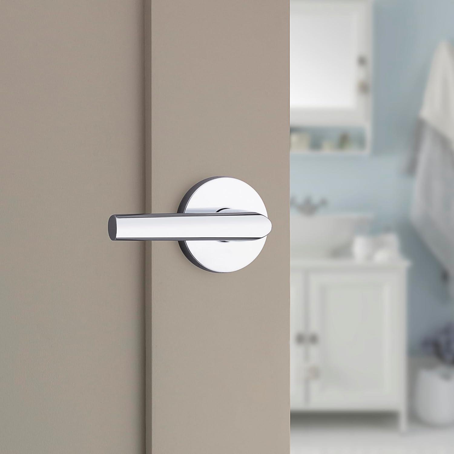 Step up to designer styles and superior security with Kwikset Signature Series products. A round contemporary lever, Milan's minimal style offers design for those interested in a playful, yet elegant aesthetic. This privacy knob/lever is best used in interior bedroom and bathroom applications where privacy is required. Both knobs/levers are operated by the push button on the inside. The outside knob/lever is unlocked by an emergency key. The Polished Chrome is perfect for coordinating in a bathroom with polished chrome fixtures.