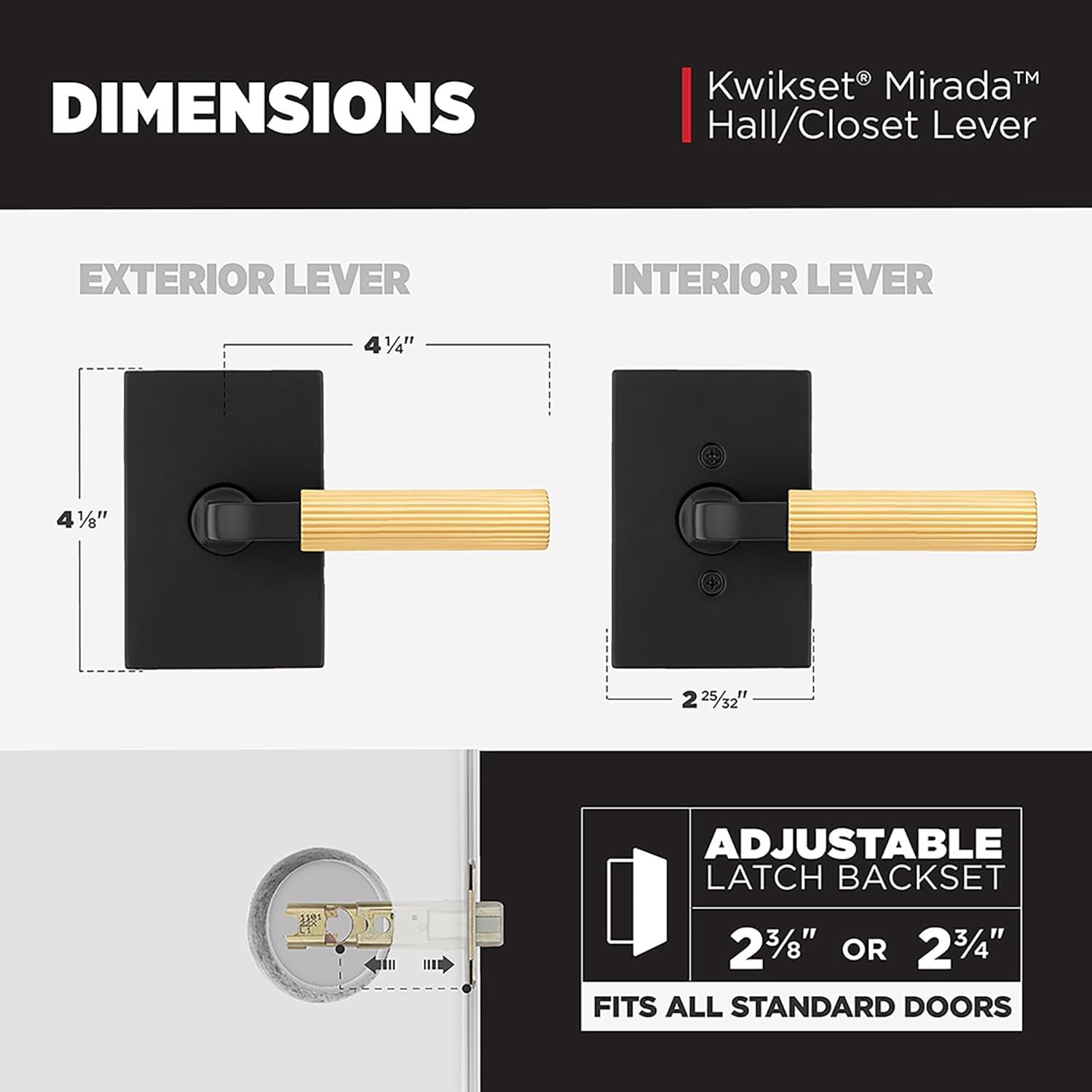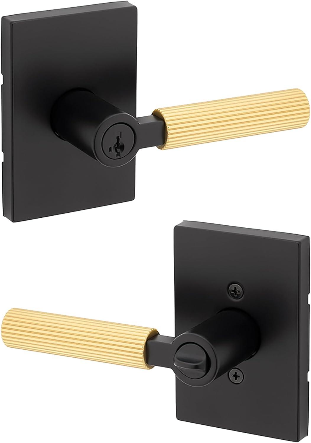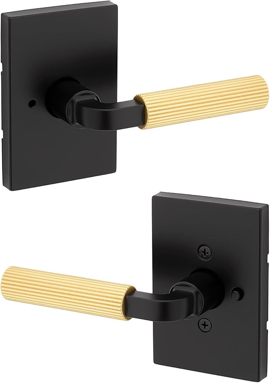 Kwikset Mirada Reeded Interior Passage Door Handle, Lever for Closet and Hallway Doors, Reversible Non-Locking Handle Lever, Satin Nickel, with Microban Protection(Matte Black Satin Brass)