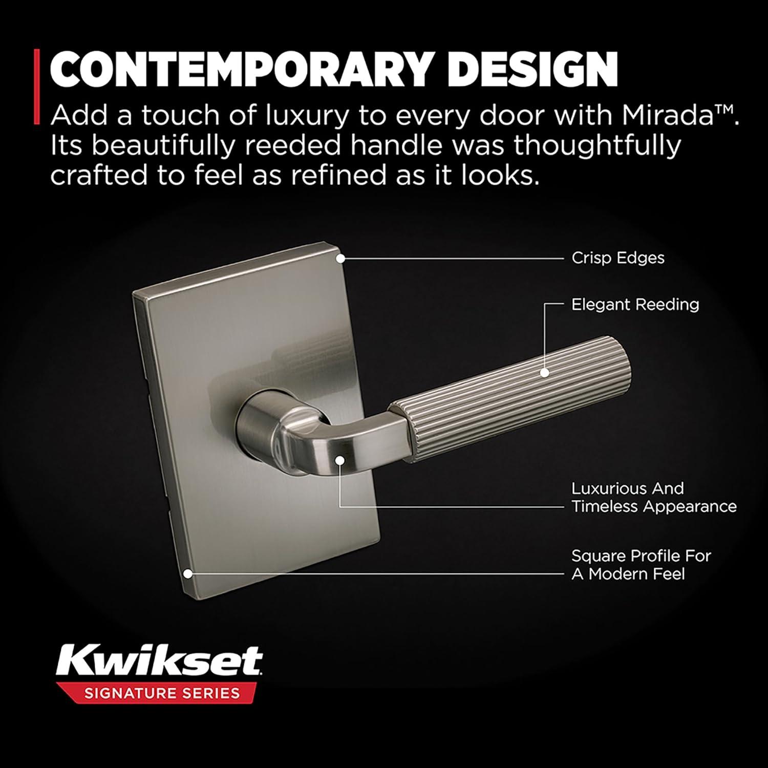 Kwikset Mirada Reeded Interior Passage Door Handle, Lever for Closet and Hallway Doors, Reversible Non-Locking Handle Lever, Satin Nickel, with Microban Protection(Matte Black)
