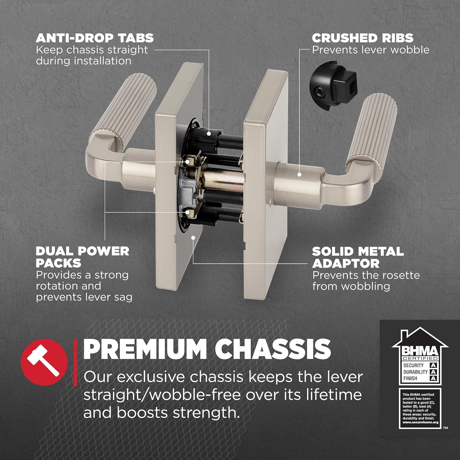 PREMIUM CHASSIS: Kwikset’s exclusive chassis uses dual compression springs, keeping the lever straight and wobble-free over the lifetime of the product and enhancing its strength and rotational feel