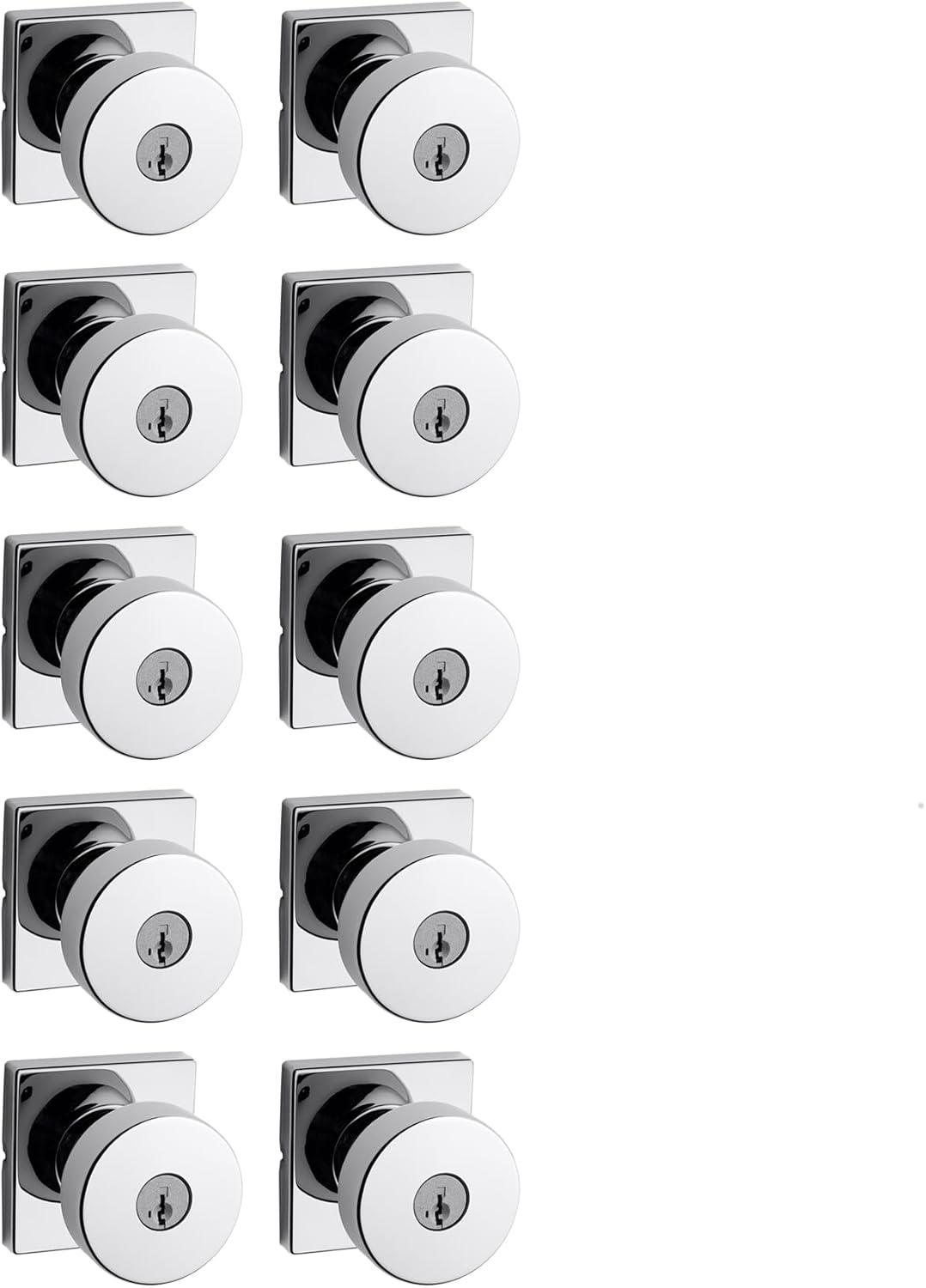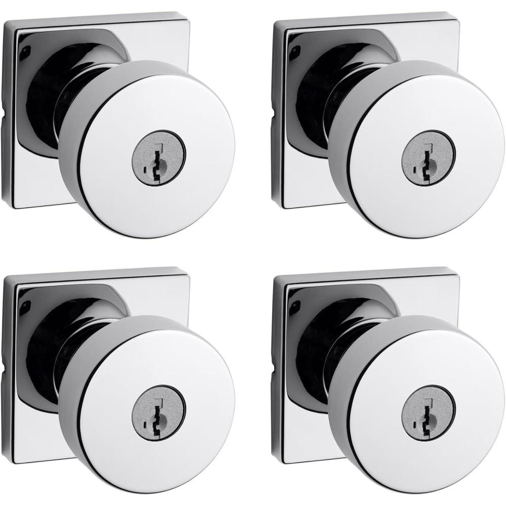Kwikset Pismo Entry Door Knob with Lock and Key, Secure Keyed Handle Exterior, Front Entrance and Bedroom, Matte Black, Pick Resistant SmartKey Rekey Security and Microban(Polished Chrome)