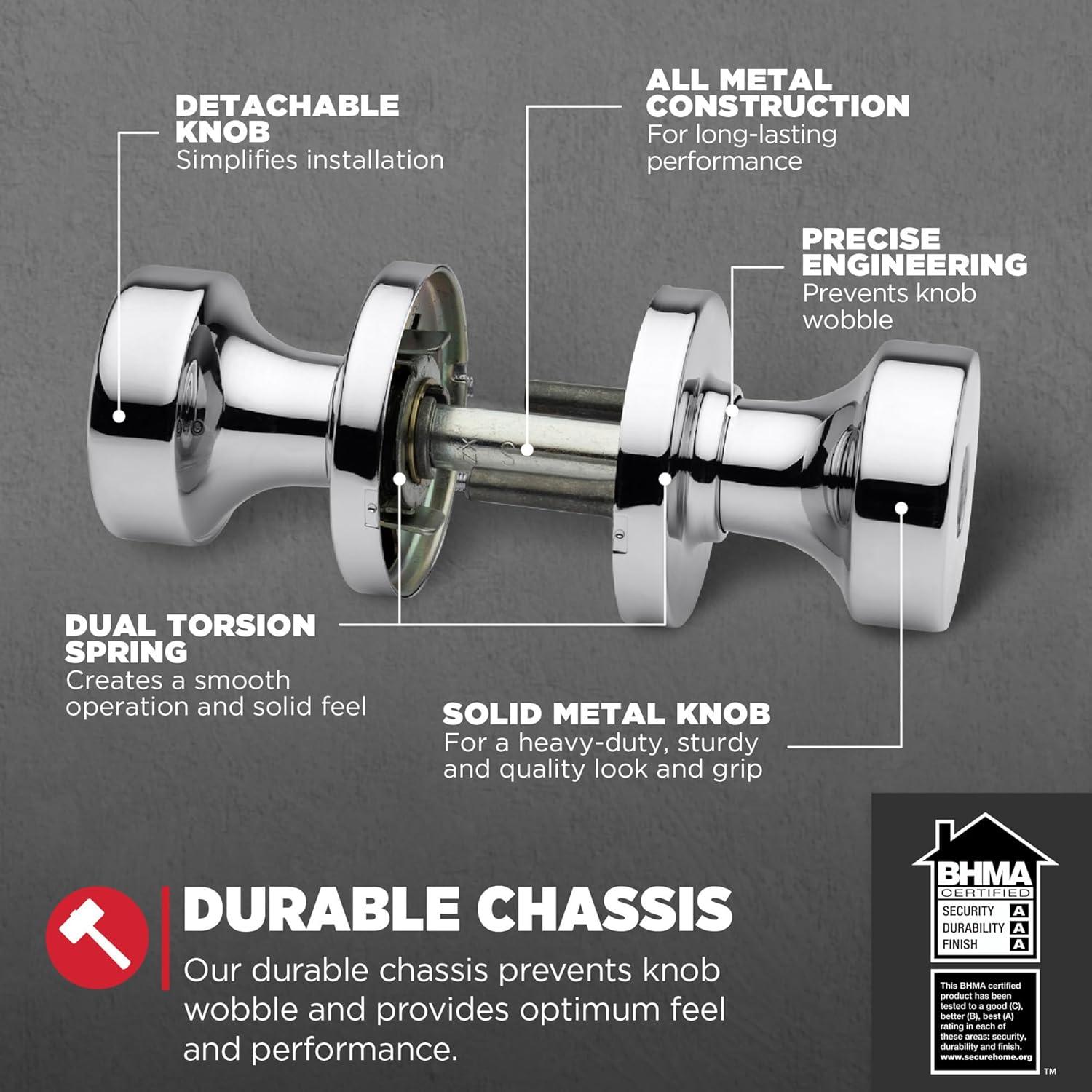 Kwikset Pismo Interior Passage Door Knob, Handle For Closet and Hallway Doors, Non-Locking Doorknob in Satin Nickel, with Microban Protection(Polished Chrome)