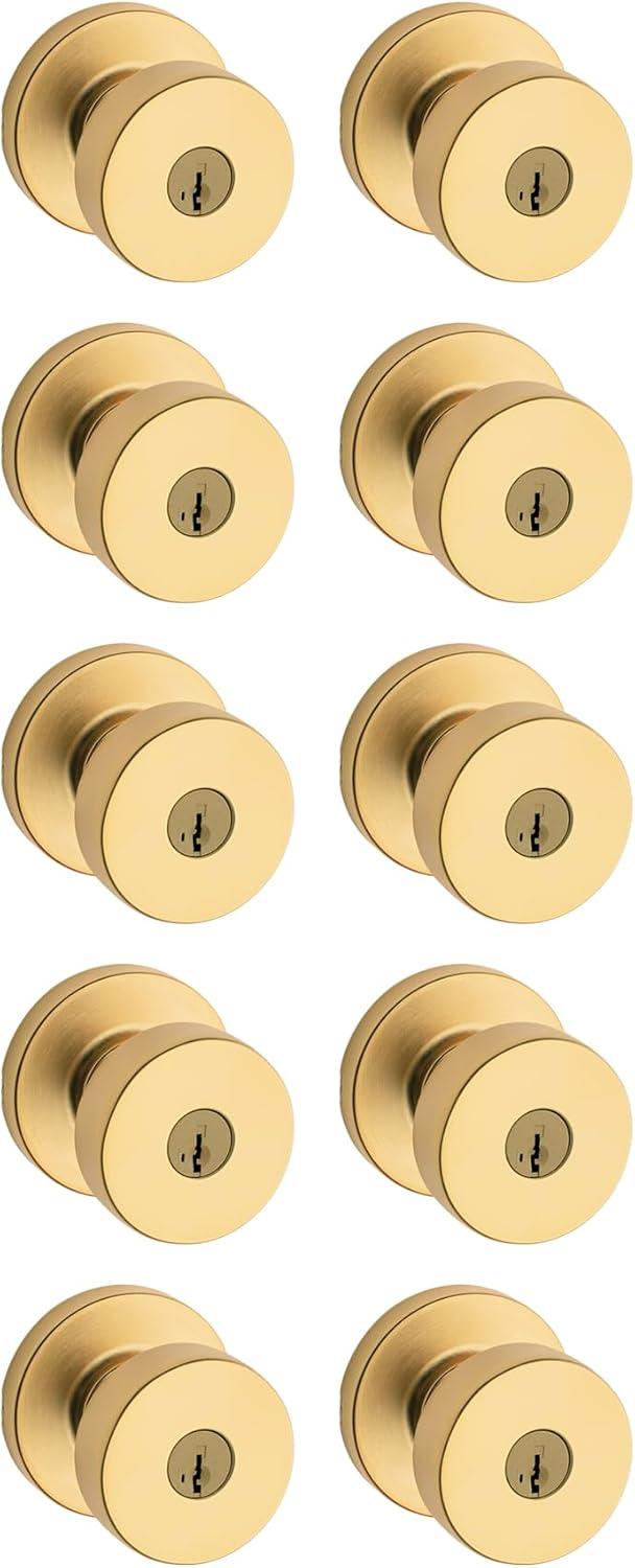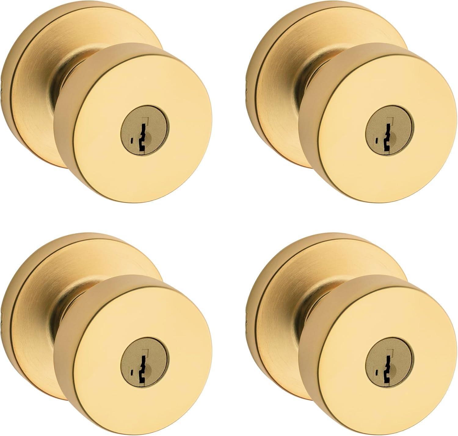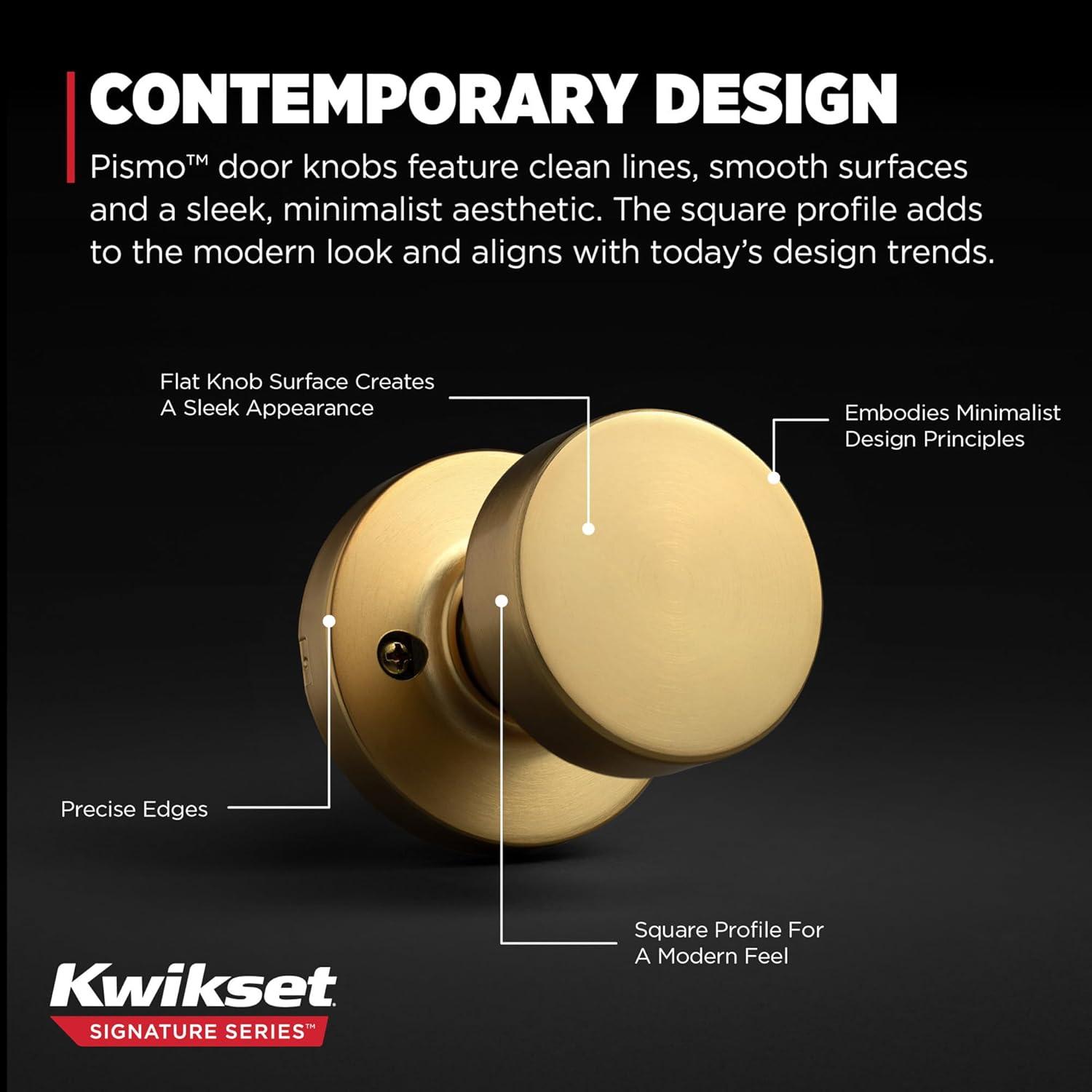 Kwikset Pismo Interior Passage Door Knob, Handle For Closet and Hallway Doors, Non-Locking Doorknob in Satin Nickel, with Microban Protection(Satin Brass)