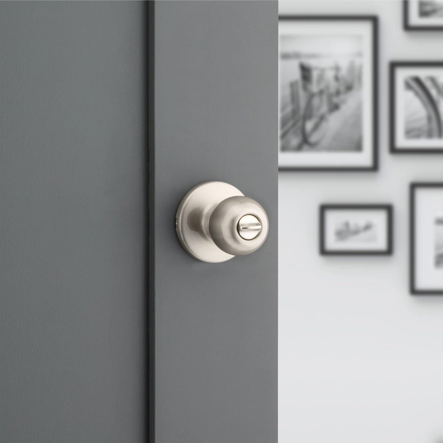 Kwikset Polo Interior Privacy Door Knob with Lock, Door Handle For Bathroom and Bedroom, Satin Nickel Keyless Turn Lock Doorknob, with Microban Protection(Satin Nickel)