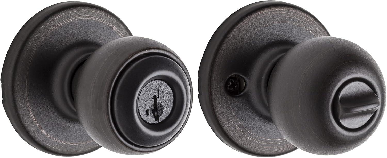 Kwikset Polo Interior Privacy Door Knob with Lock, Door Handle For Bathroom and Bedroom, Satin Nickel Keyless Turn Lock Doorknob, with Microban Protection(Venetian Bronze)