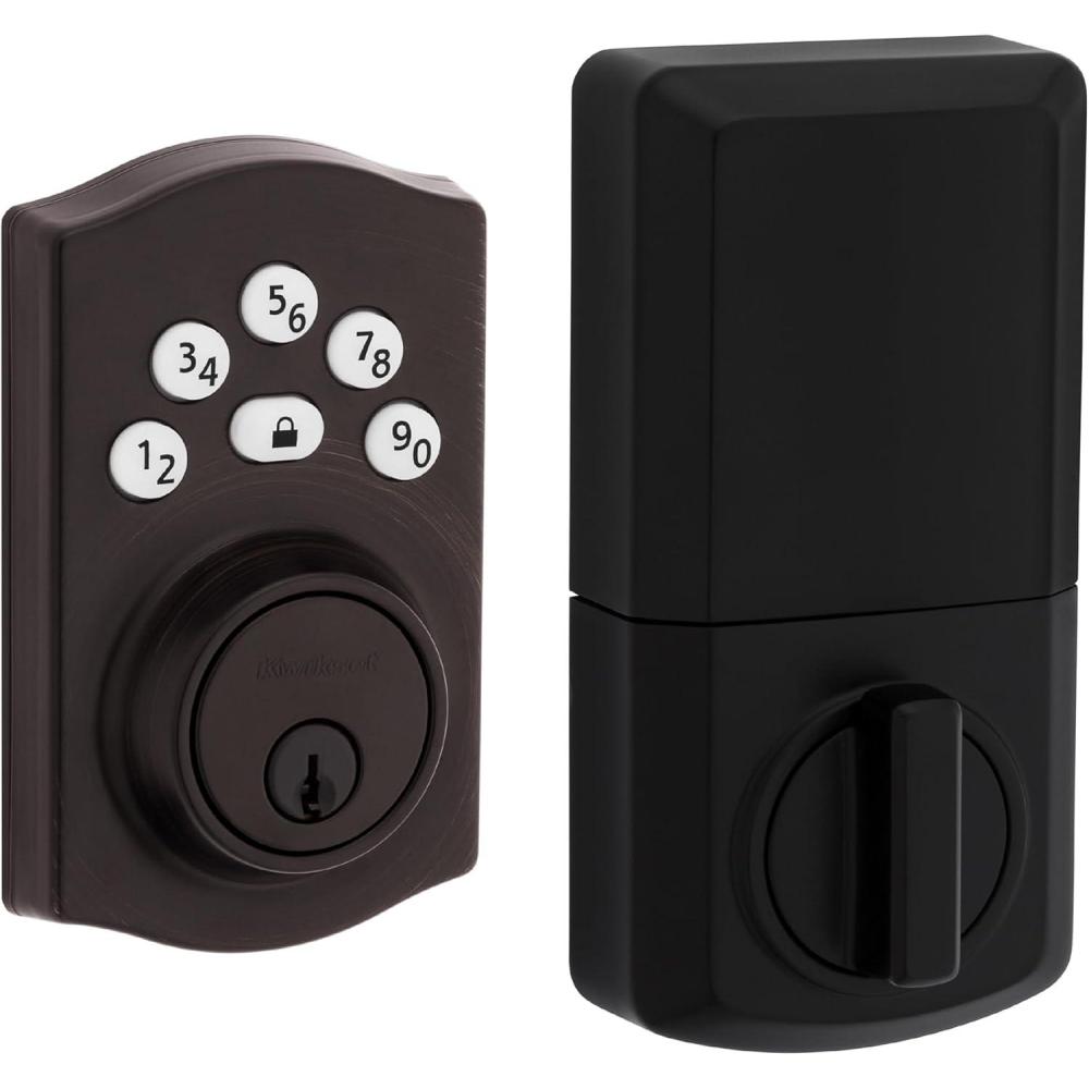 imageKwikset Powerbolt 240 5Button Keypad Satin Nickel Contemporary Electronic Deadbolt Door Lock Featuring Convenient Keyless Entry Customizable User Codes and Auto LockingVenetian Bronze