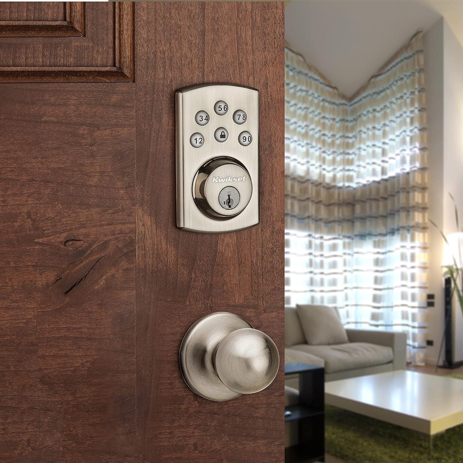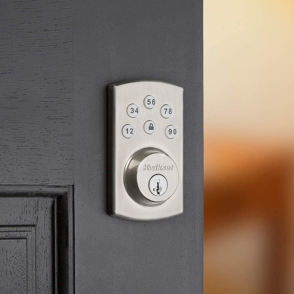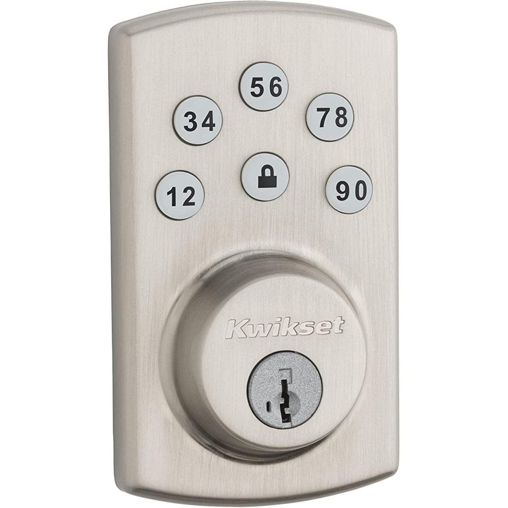 imageKwikset Powerbolt 907 Keyless Entry Deadbolt Electronic Door Lock 6 Button Keypad Auto Locking with Keyed Pick Resistant SmartKey ReKey Security Technology Satin NickelSatin Nickel