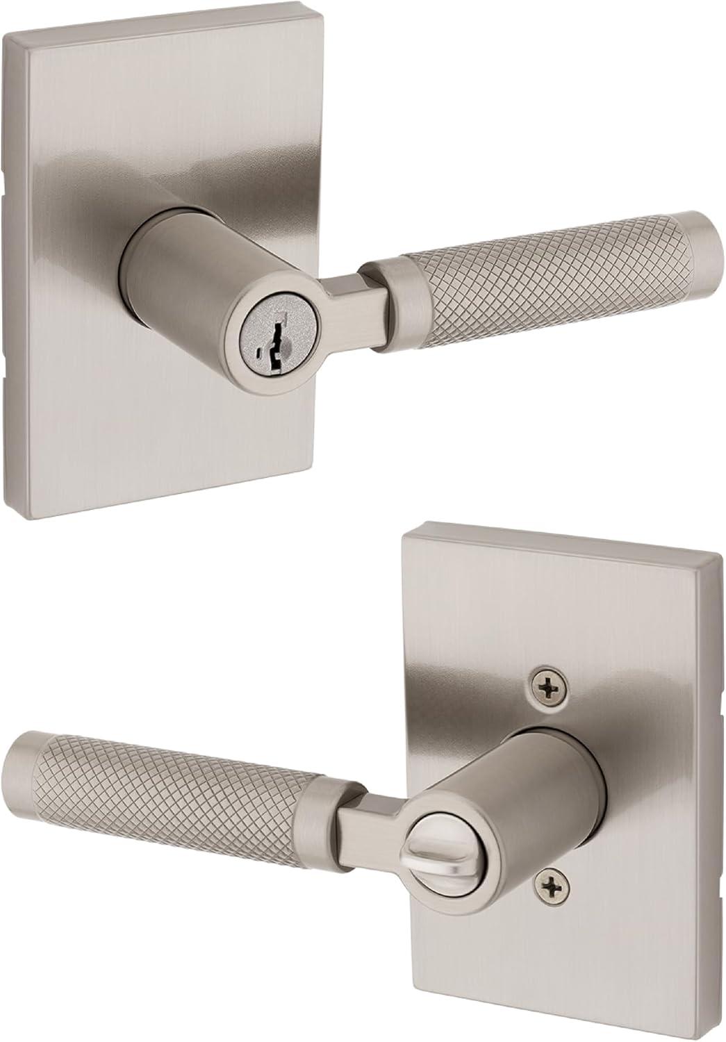 imageKwikset Prava Entry Door Knurled Handle with Lock and Key Secure Keyed Reversible Lever Exterior for Front Entrance and Bedrooms Satin Brass Pick Resistant Smartkey Rekey Security and MicrobanSatin Nickel