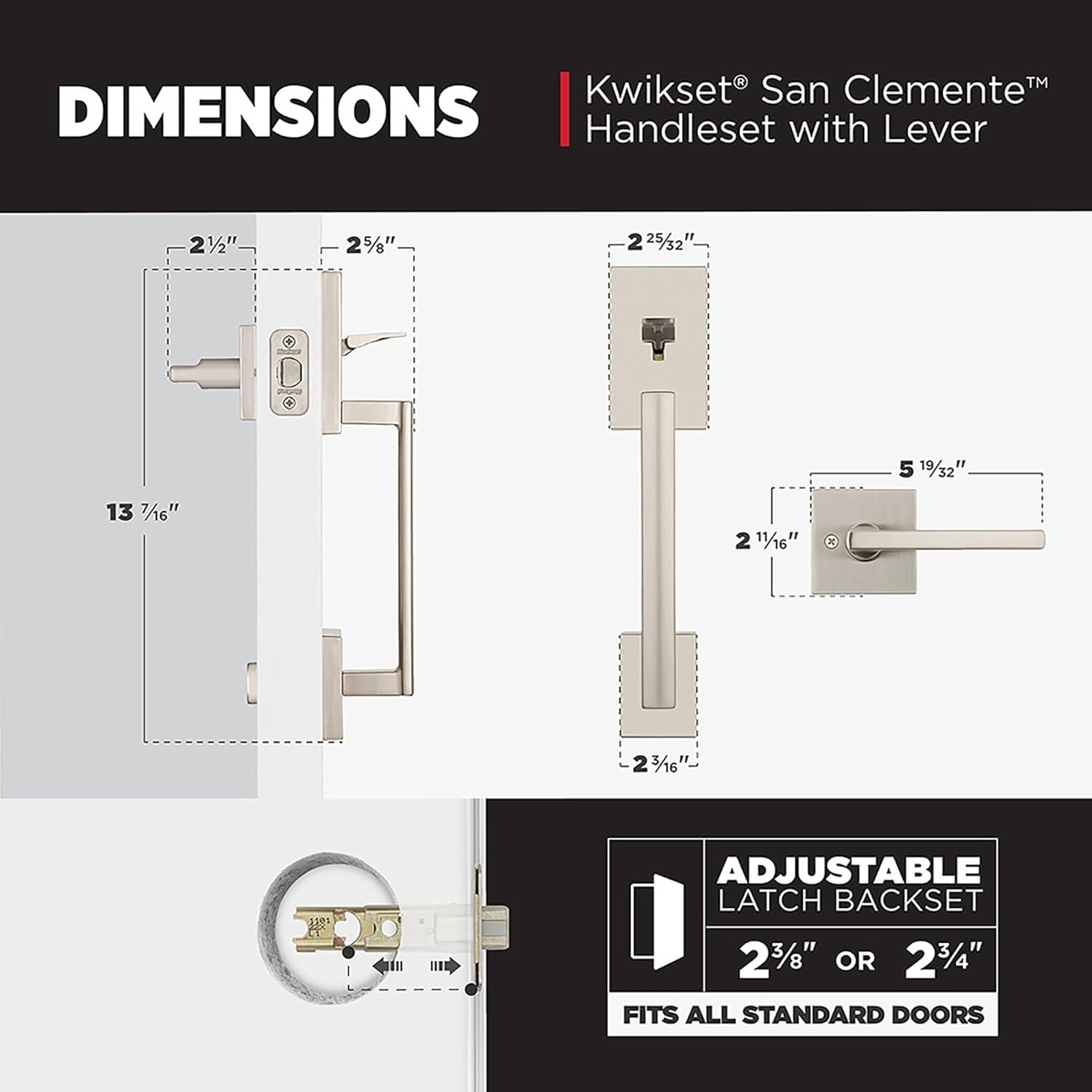Be the first to review “Kwikset San Clemente Front Door Handle No Lock, Entry Handleset Exterior with Interior Reversible Handed Lever, Non-Locking, Satin Nickel, Deadbolt Not Included, with Microban Protection”