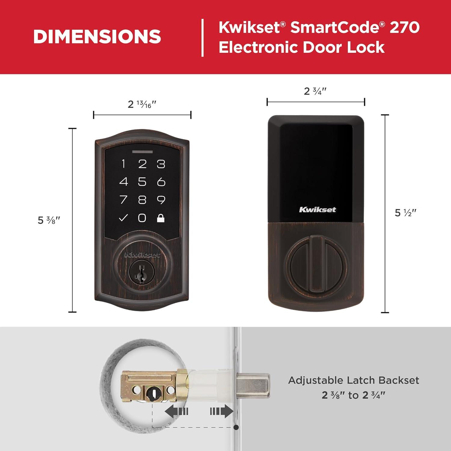 Kwikset SmartCode 270 Keyless Entry Electronic Touchpad Deadbolt Door Lock with Auto-Lock, Custom User Codes, Advanced Security in Venetian Bronze Traditional(Venetian Bronze)