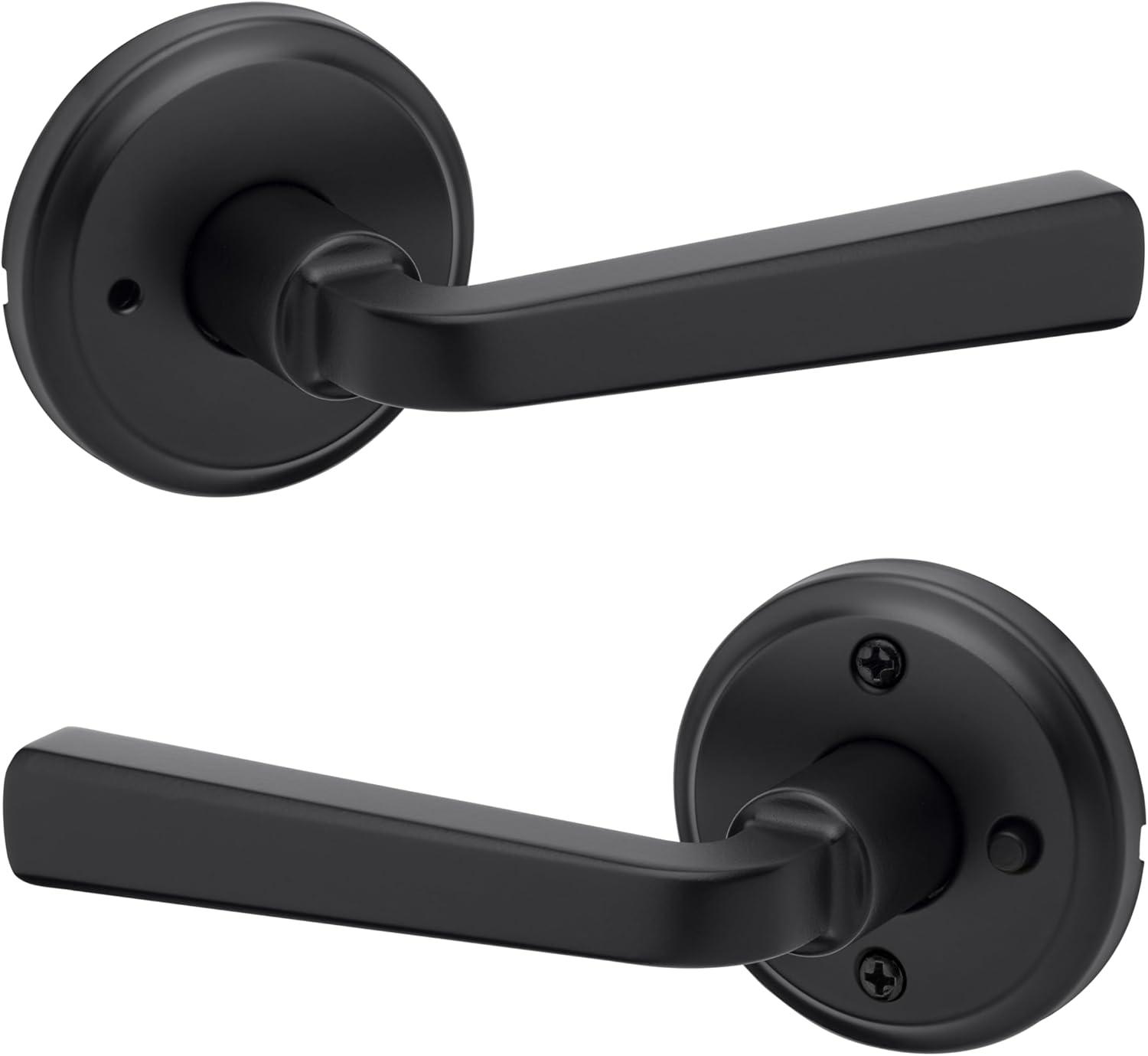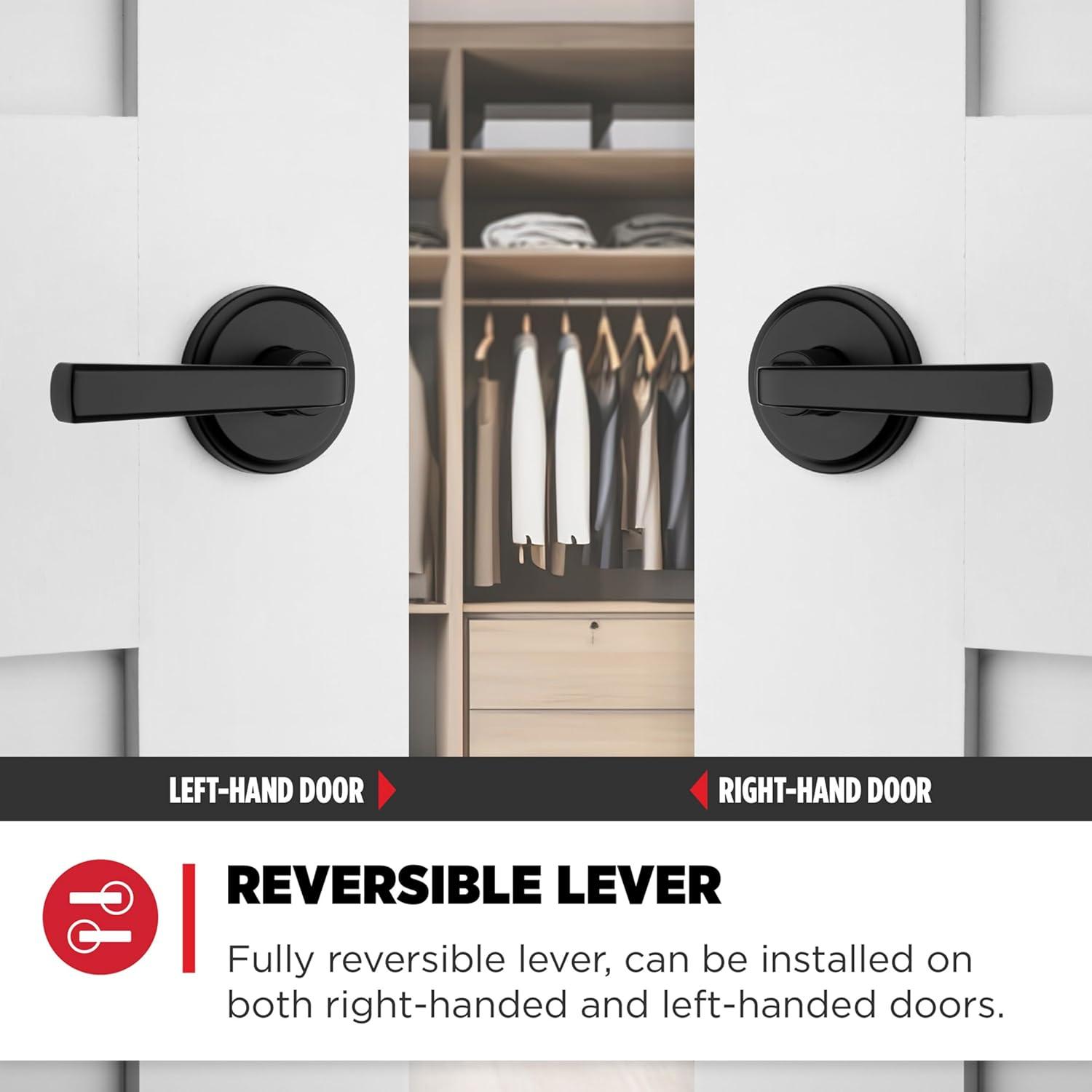 Kwikset Trafford Interior Passage Door Handle, Lever for Closet and Hallway Doors, Reversible Non-Locking Handle Lever, Matte Black, with Microban Protection(Matte Black)