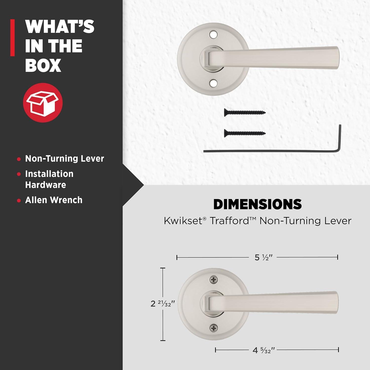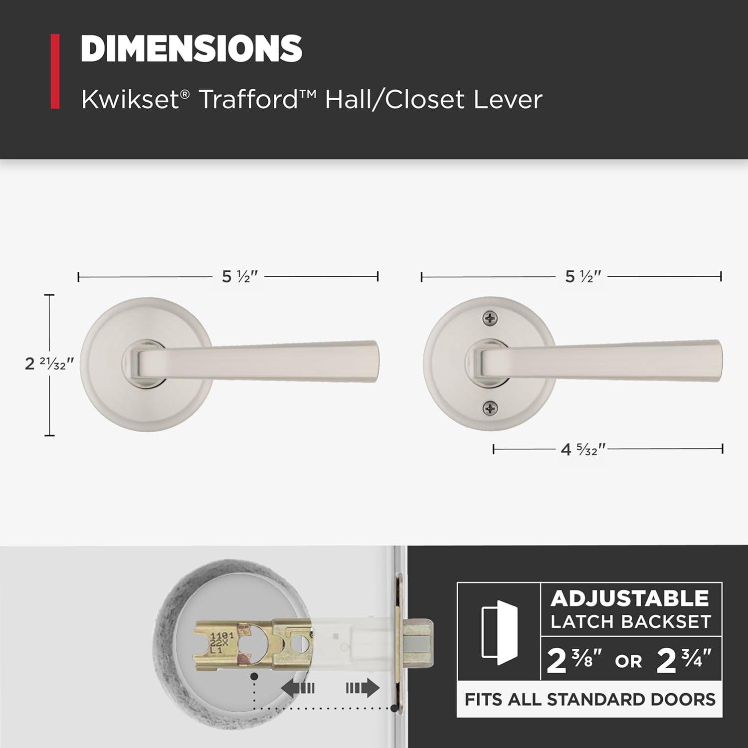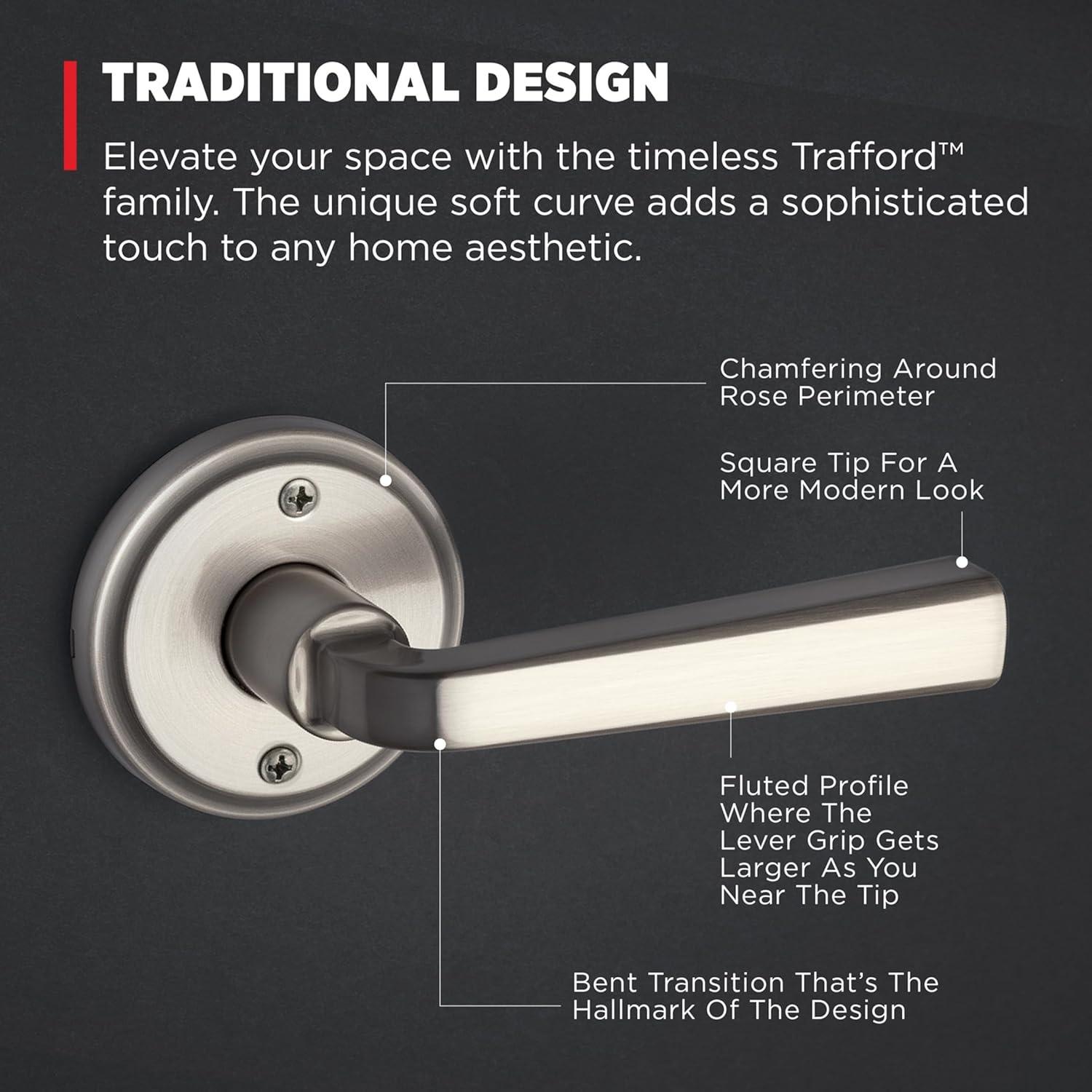 Step up to designer styles and superior security with Kwikset Signature Series products. Elevate your space with the timeless Trafford family. The unique soft curve adds a sophisticated touch to any home aesthetic, while the designer rosette imparts a warm and welcoming feel to your doors. Create your desired look with three premium finishes, then let our bump- and pick-resistant SmartKey Security protect what matters most. Adorn your interior and exteriors with Trafford levers, and enjoy our highest level of security, easiest installation and peace of mind. This passage lever is best used on interior hall and closet applications where no locking is required, so the lever is always free to turn. The lever is reversible and mounts on both left and right handed doors. The rich tones of Matte Black add the finishing touch to this product. The Matte Black finish provides a rich and warm complement to the product’s style.