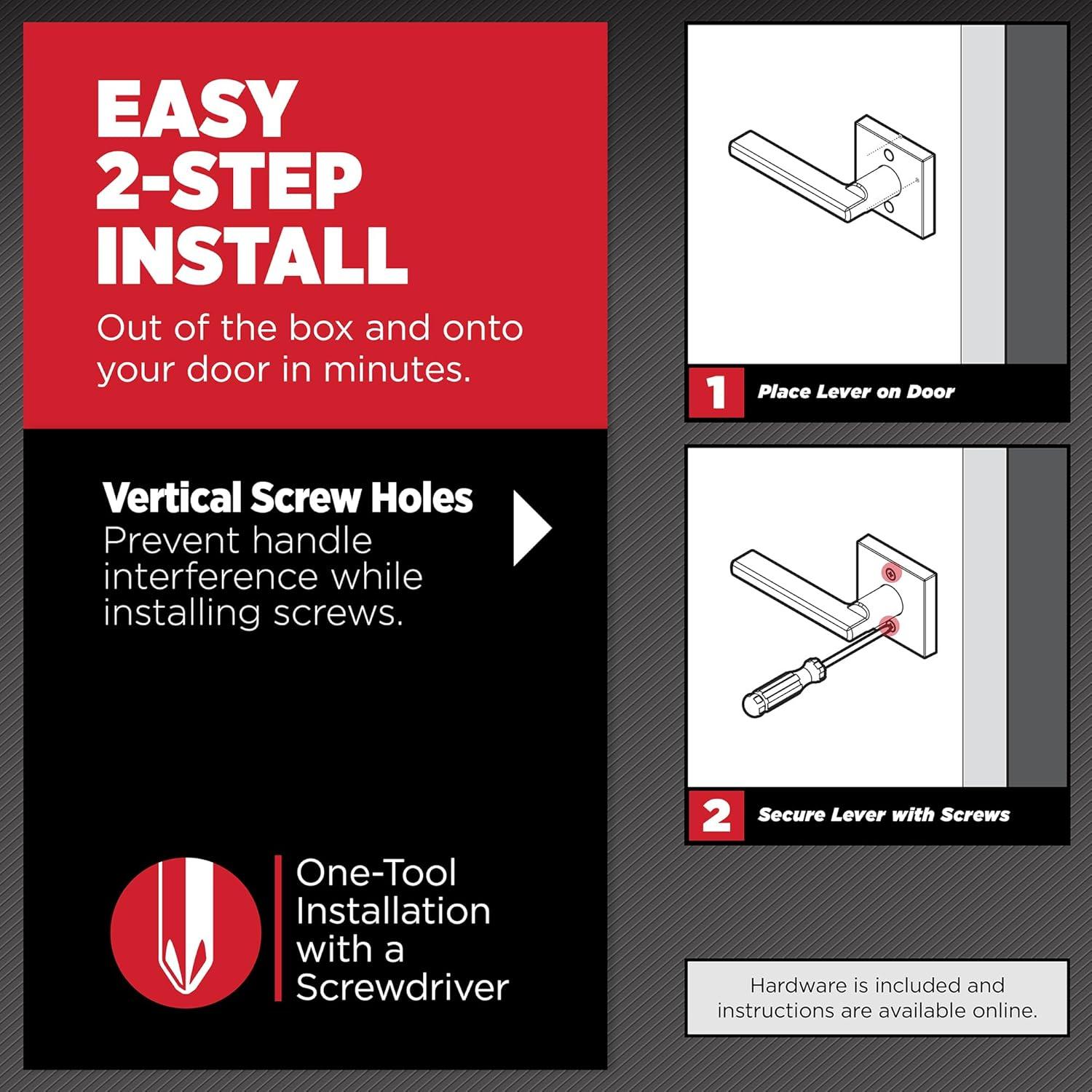 EASY INSTALL REVERSIBLE LEVER: Do it yourself, installs in minutes with just a screwdriver. Reversible handle for left- or right-handed doors, detailed directions provided