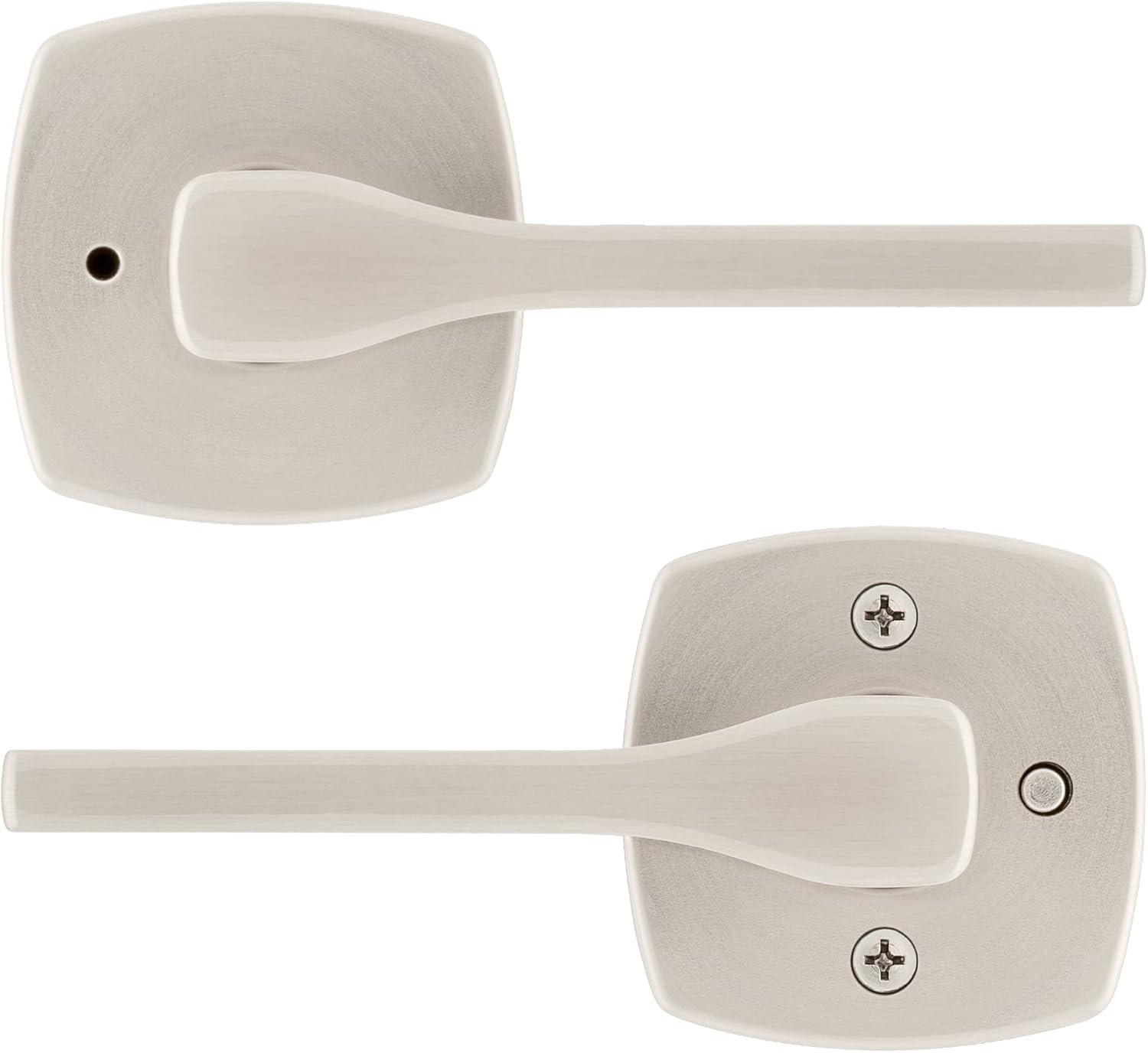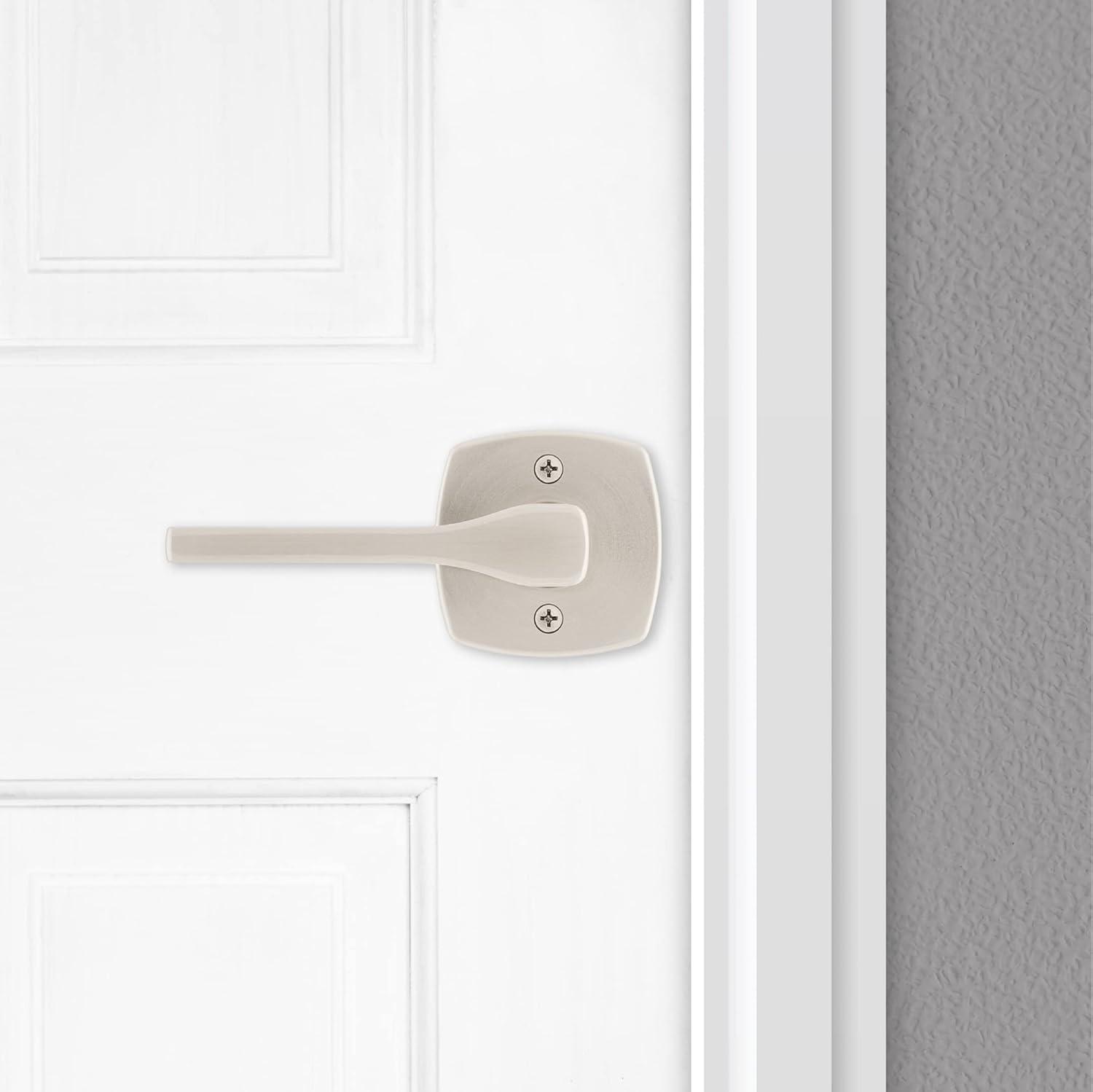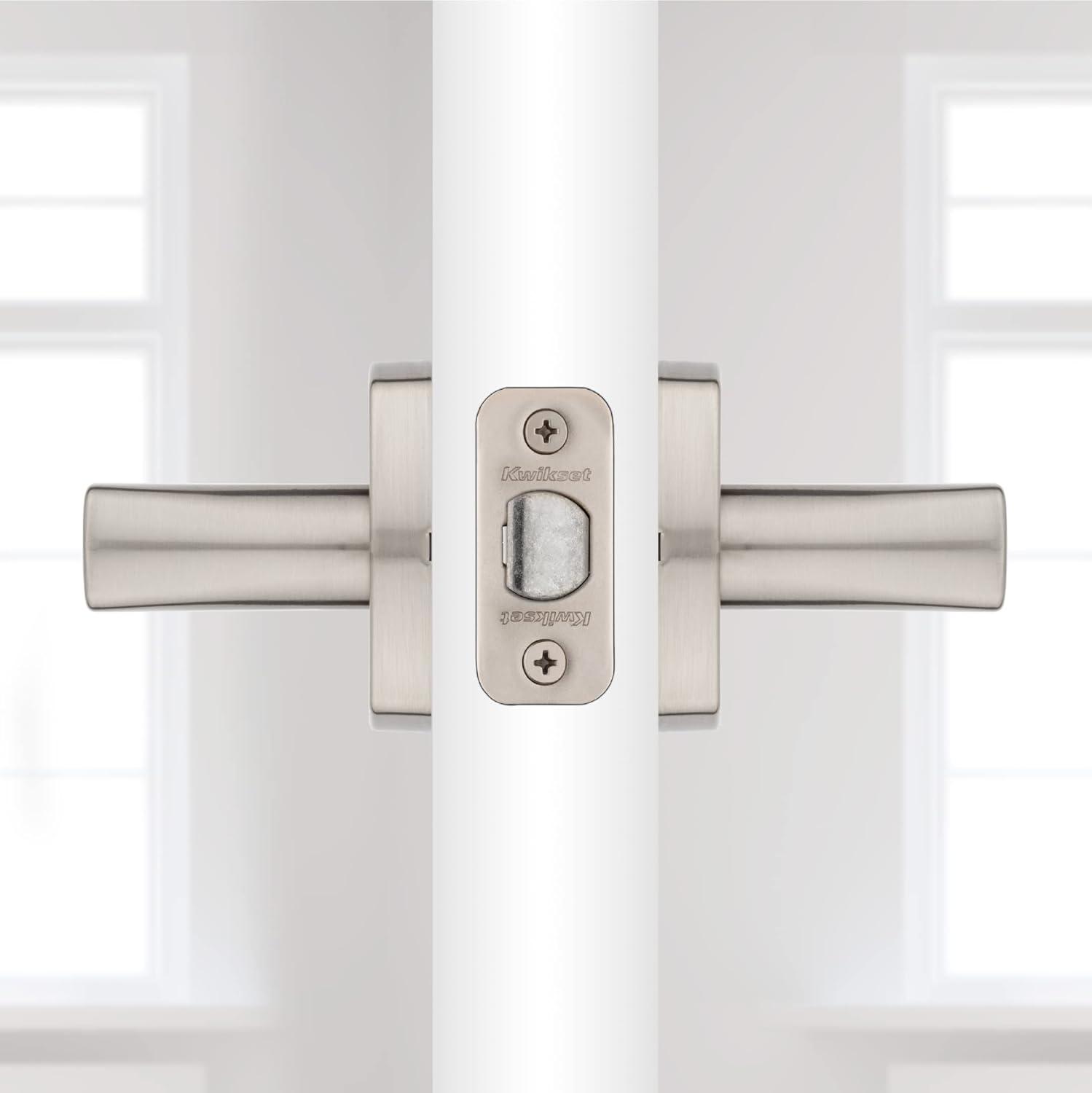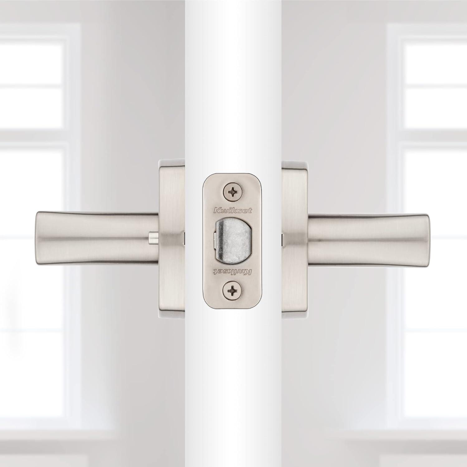 Kwikset Tripoli Lever Interior Privacy Door Handle with Lock, Door Lever For Bathroom and Bedroom, Polished Chrome Reversible Keyless Turn Lock(Satin Nickel)