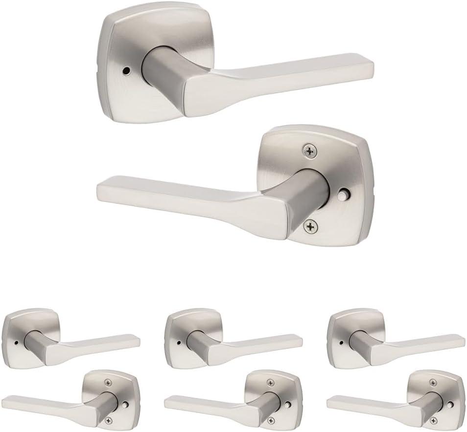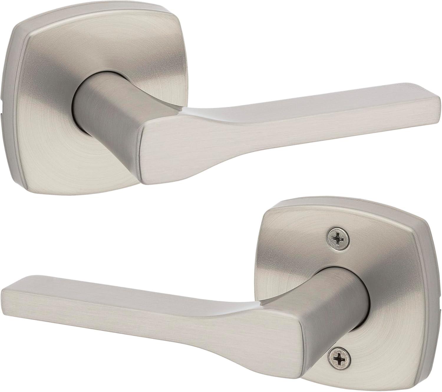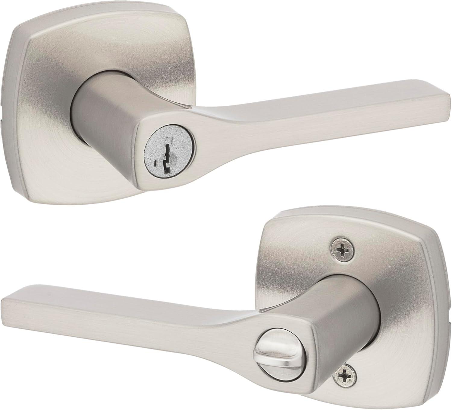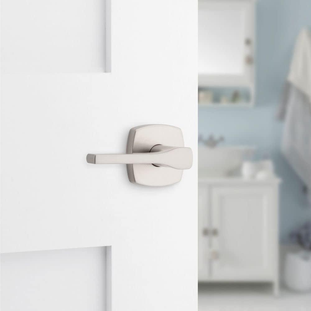 Kwikset Tripoli Lever Interior Privacy Door Handle with Lock, Door Lever For Bathroom and Bedroom, Polished Chrome Reversible Keyless Turn Lock(Satin Nickel)