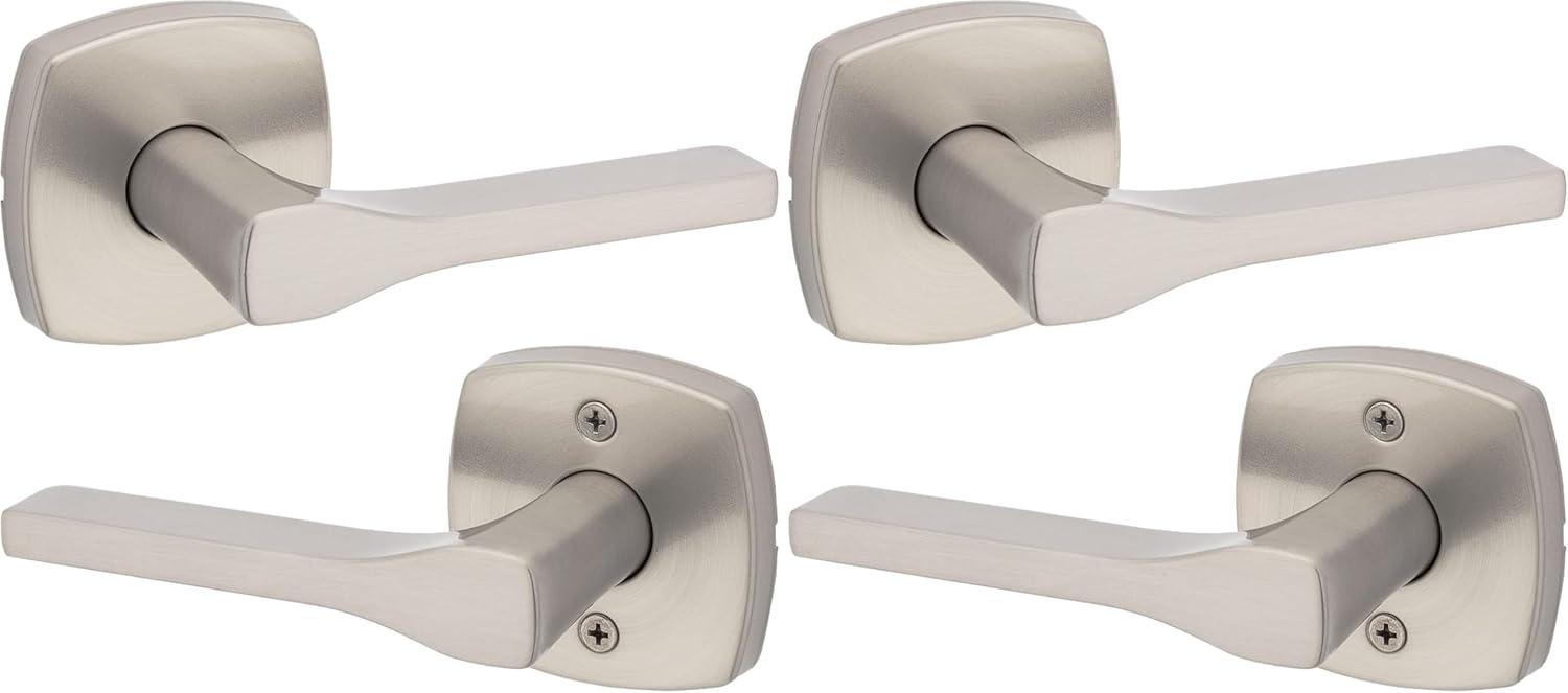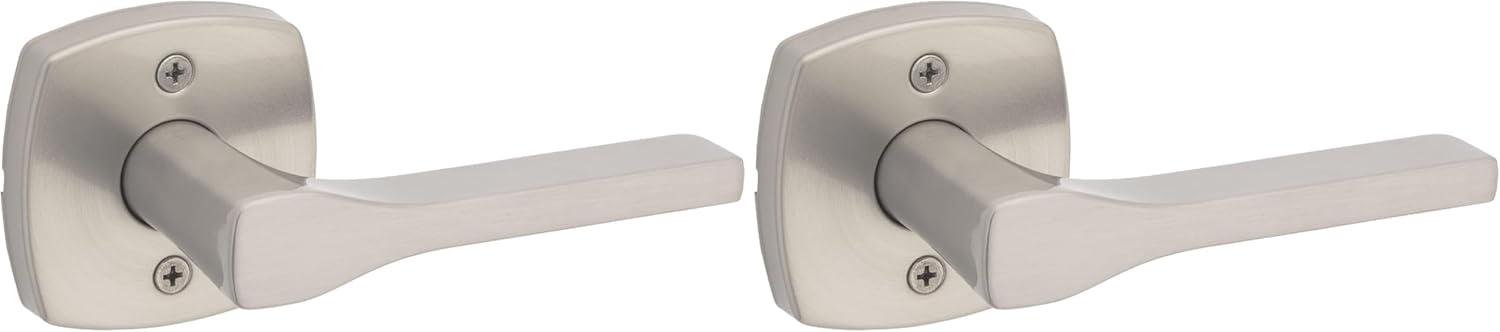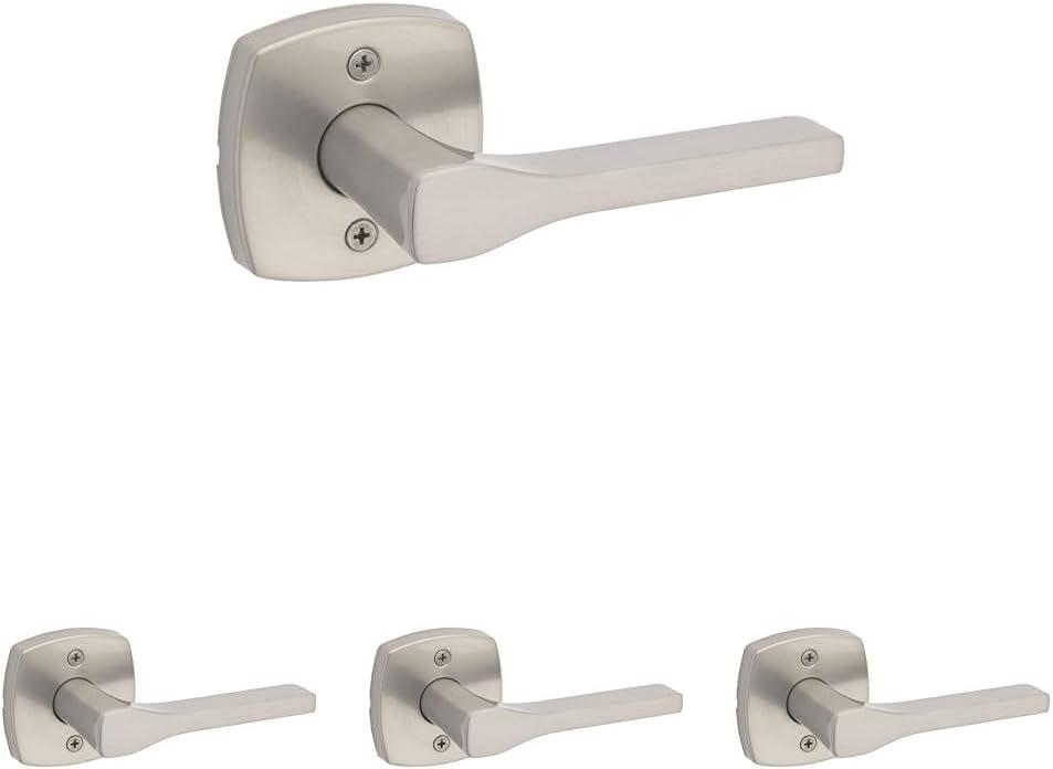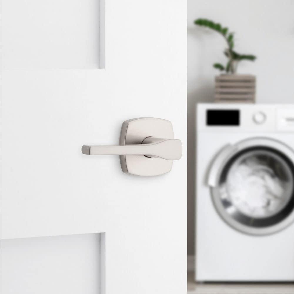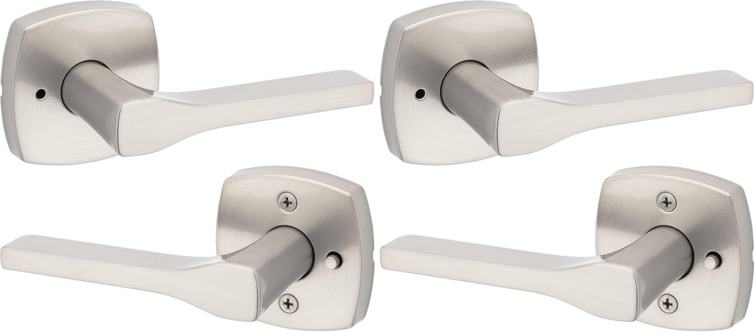 Kwikset Tripoli Lever Interior Privacy Door Handle with Lock, Door Lever For Bathroom and Bedroom, Polished Chrome Reversible Keyless Turn Lock(Satin Nickel)