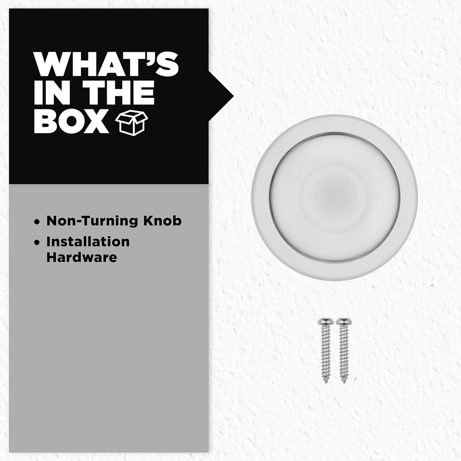 BOX INCLUDES: Interior Knob, Screws, Installation Hardware, Install Guide
